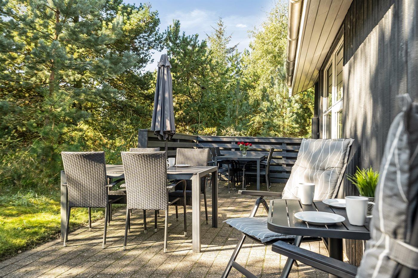 Ferieboligen er beliggende på en 951 m² stor naturgrund. Der er 900 m til havet. Nærmeste forretning er beliggende i en afstand af 4000 m. Til ferieboligen hører åbent terrasseareal. Desuden er der overdækket terrasse. Der er redskabsrum. Parkering ved ferieboligen.