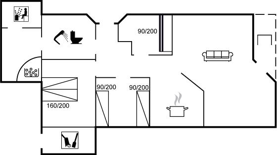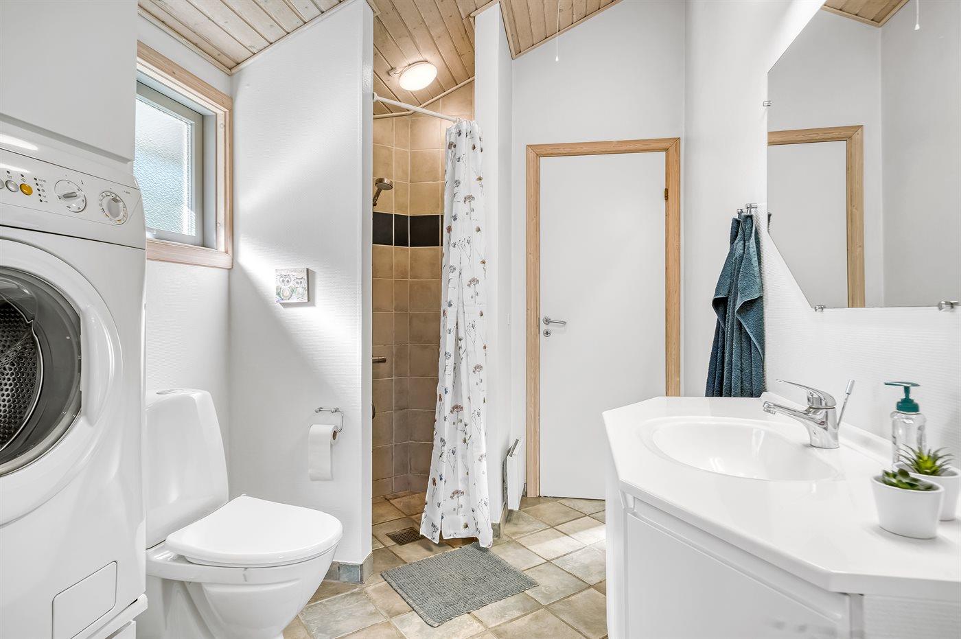 Der er 1 badeværelse med bruseniche og 1 toilet. I saunaen er der mulighed for afslapning.