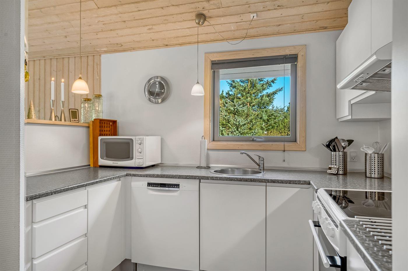 Køkkenet er udstyret med 1 køleskab. Der er 4 keramiske kogeplader, varmluftovn, mikrobølgeovn samt opvaskemaskine.