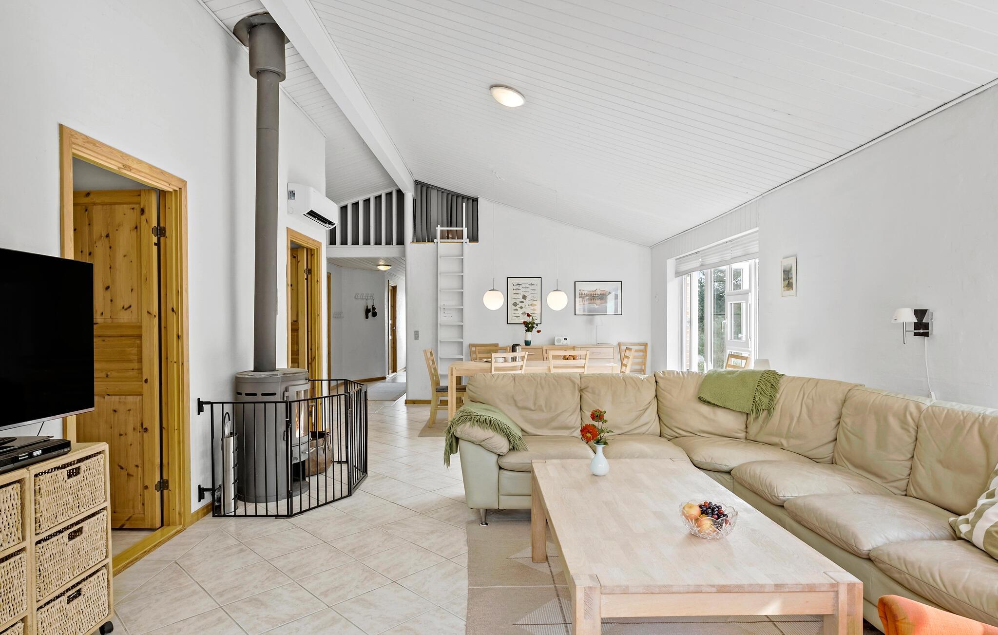 Inde i feriehuset finder I 5 soveværelser, 2 badeværelser, et køkken og en smuk opholdsstue. Soveværelserne er udstyret med 2 dobbeltsenge og 6 enkeltsenge - her vil I med garanti komme til at sove godt. Efter en lang dag opfordres I til at slappe af i husets boblebad og sauna.