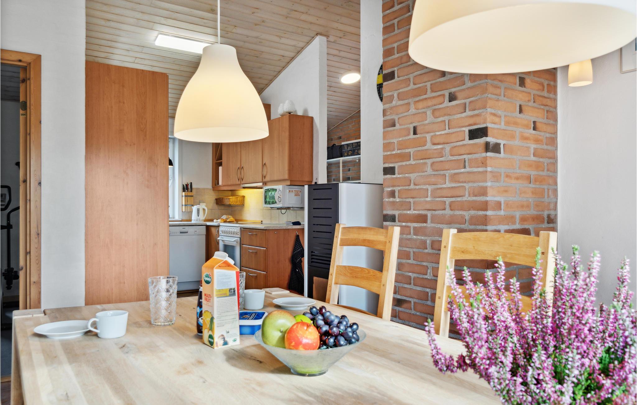 Glæd jer til jeres ferie i Thorup Strand, Nordeuropas største kystlandingsplads, med Blåbærhuset som en dejlig base. De lyse rum indbyder til hyggelige familiemåltider, leg eller bare ren afslapning i sofaerne med udsigt over haven. Her behøver I ikke at sætte træningsprogrammet på pause, for huset byder på et fremragende fitnessrum med godt udstyr. Efter træningen kan I slappe af i saunaen og køle af på terrassen. Slik sol på liggestolene og nyd en dejlig stund med kaffe og kage i det fri.