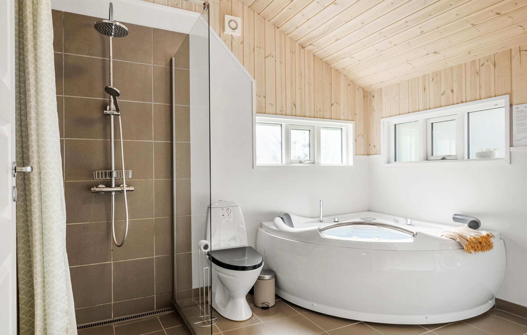 Dette lyse og rummelige feriehus ligger på en rolig, grøn naturgrund og forkæler jer med et indbydende og komfortabelt møbleret interiør. Glæd jer til hyggelige måltider i den åbne stue, hvor store vinduer giver jer udsigt over haven. Forkæl jer selv med nogle afslappende øjeblikke i saunaen eller spabadet, mens børnene leger med legeredskaberne, og andre laver mad i køkkenet.
