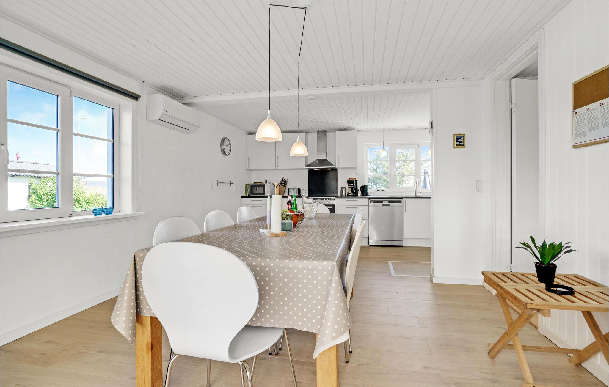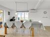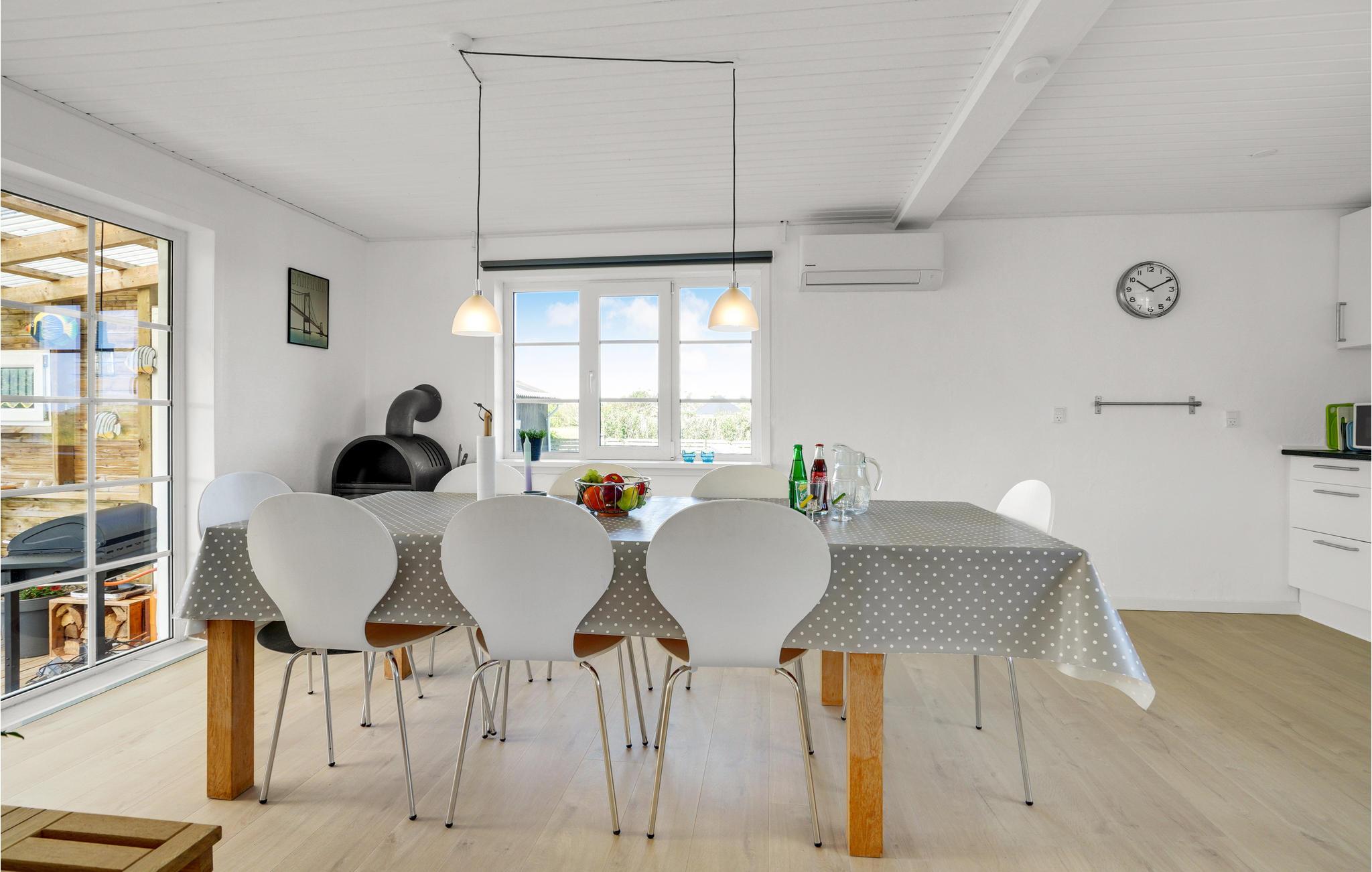 Dette store feriehus ved Thorup Strand er i to plan og derfor oplagt til en ferie for en børnefamilie med hund. Huset er hyggeligt og lyst indrettet i en enkel farveskala, og der er en herlig udsigt fra vinduerne i alle rum. Særligt på førstesalen, hvor der er en fantastisk udsigt til det flade landskab og vandet.