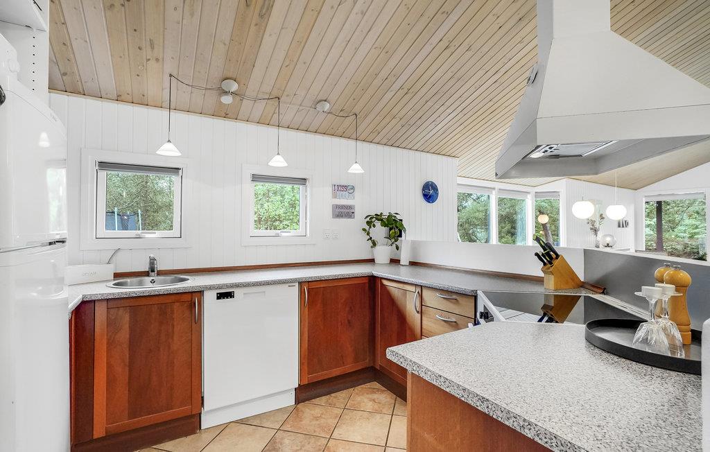 Dejligt sommerhus på en lukket og ugeneret grund. På den store terrasse bag huset, kan I nyde naturen og sommerlivet uden, at være forstyrret af forbipasserende og naboer. Huset er dejligt praktisk, med bevarelse af sin oprindelige stil fra 1990erne. I ydersæsonen kan I hygge jer foran den tændte brændeovn, eller året rundt dyrke wellness i sauna og whirlpool. Husets fire gode soveværelser giver god plads til to familier, en familie i flere generationer, eller gode venner, der gerne vil nyde ferien sammen.Jammerbugtens storslåede og bakkede natur indbyder til lange vandreture krydret med fantastiske udsigter fra de høje bakketoppe. De stærke naturkræfter, der har formet Jammerbugten, har skabt klinter og klitter, der danner rammen om 54 km uspoleret strand. Derfor er der bestemt dømt badeliv langs den dejlige sandstrand mellem Bulbjerg og Blokhus. Tag badehåndklædet og solcreme under armen og find en solbeskinnet plads på stranden. Bliver det for varmt kan man roligt kaste sig i bølgerne for vandkvaliteten er i top.