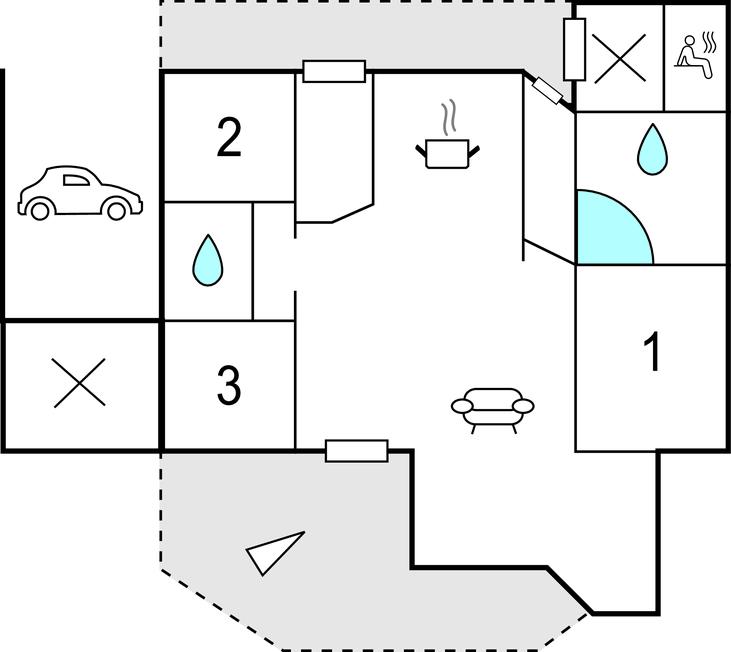 Badeværelse 11m2 (nr. 1) - WC. Varmt og koldt vand. Bruser