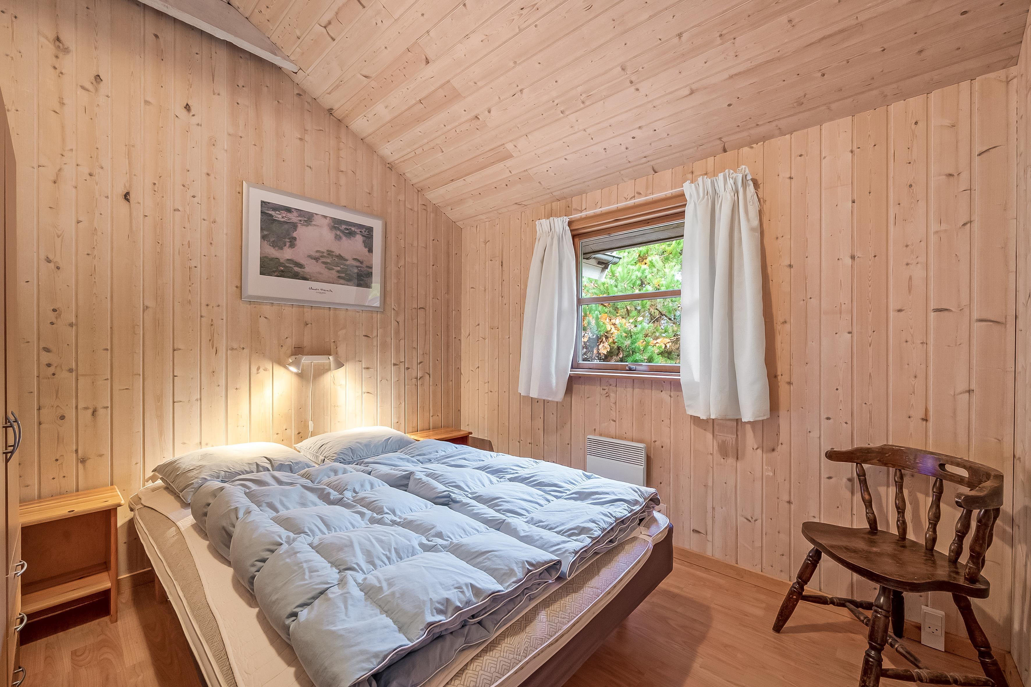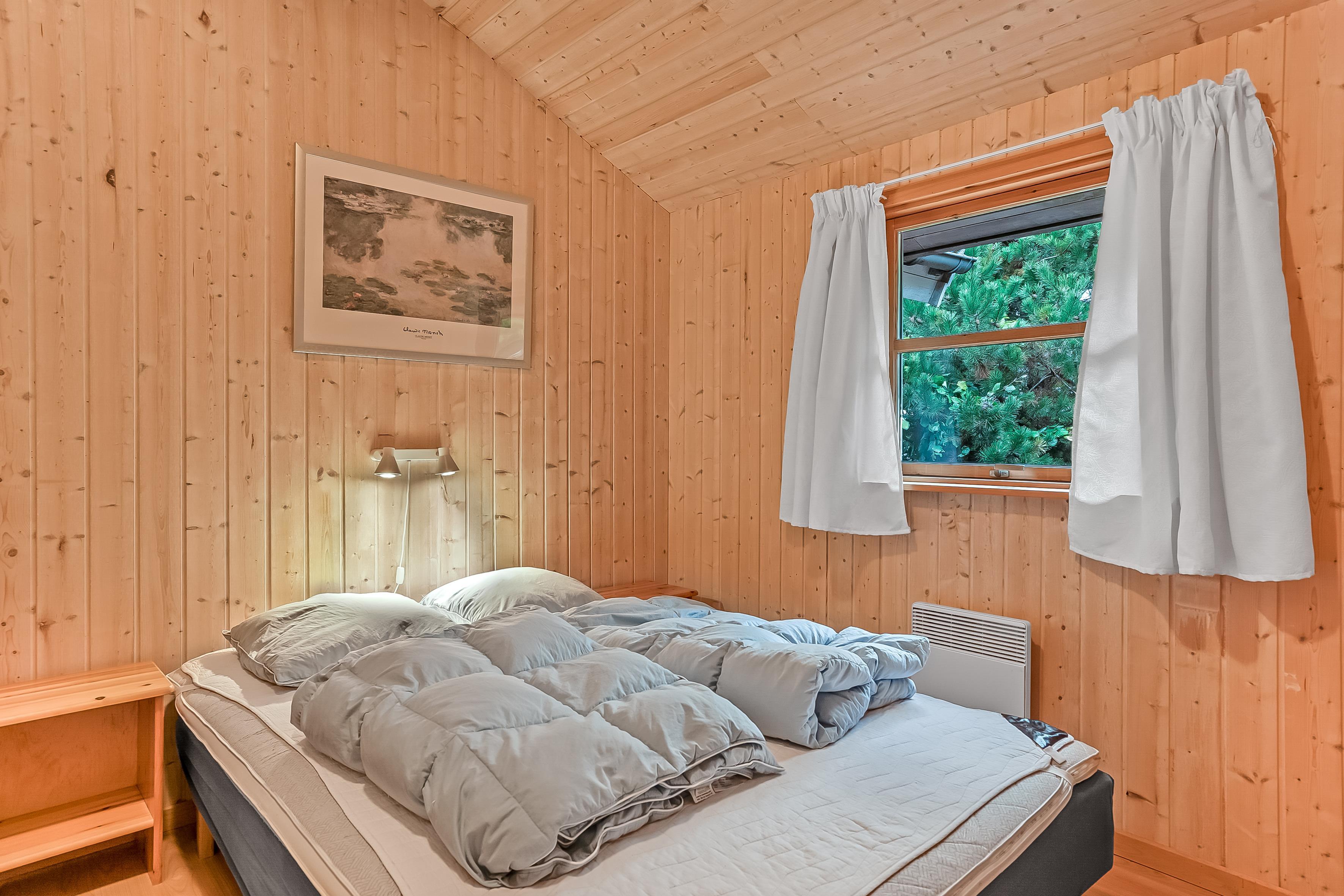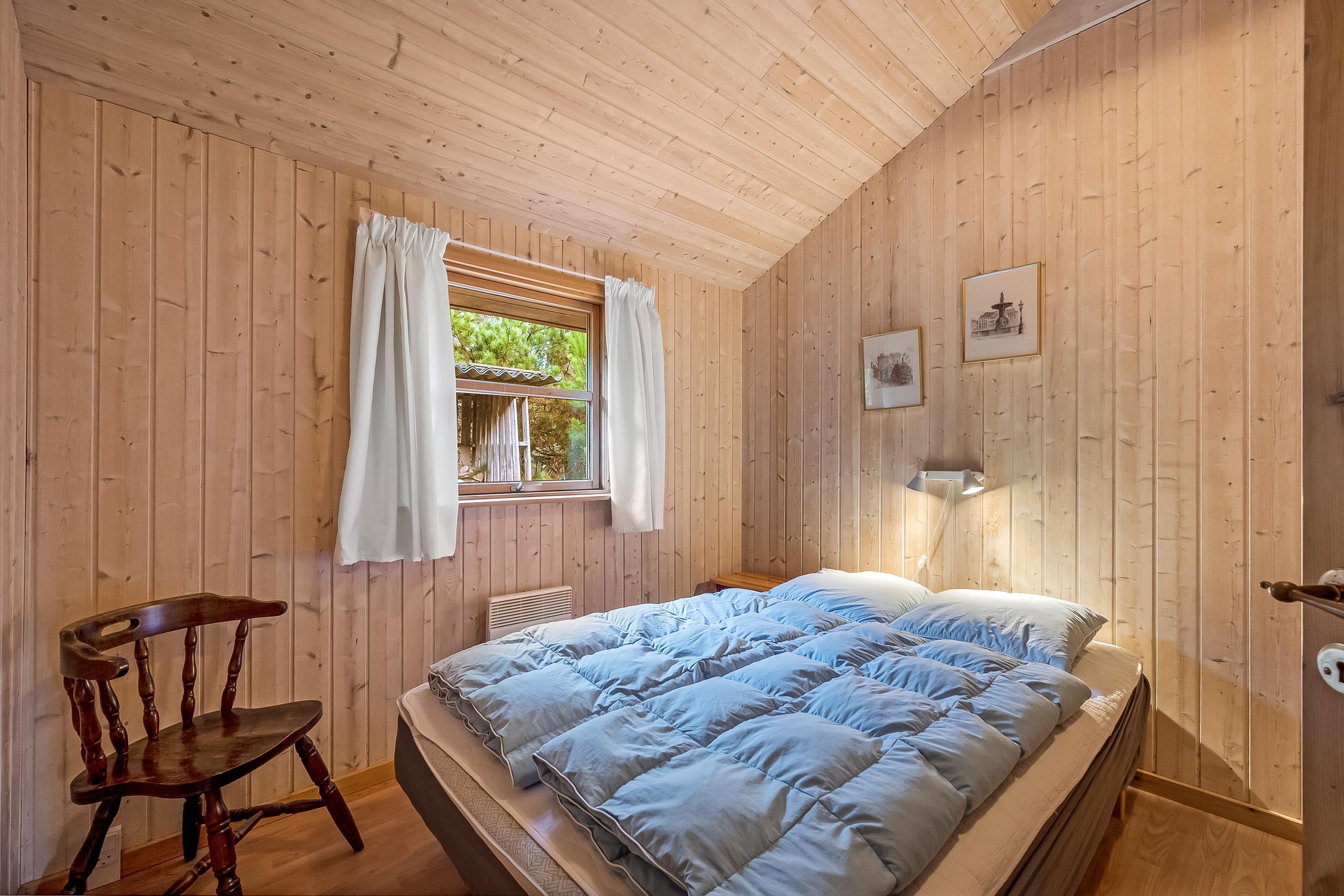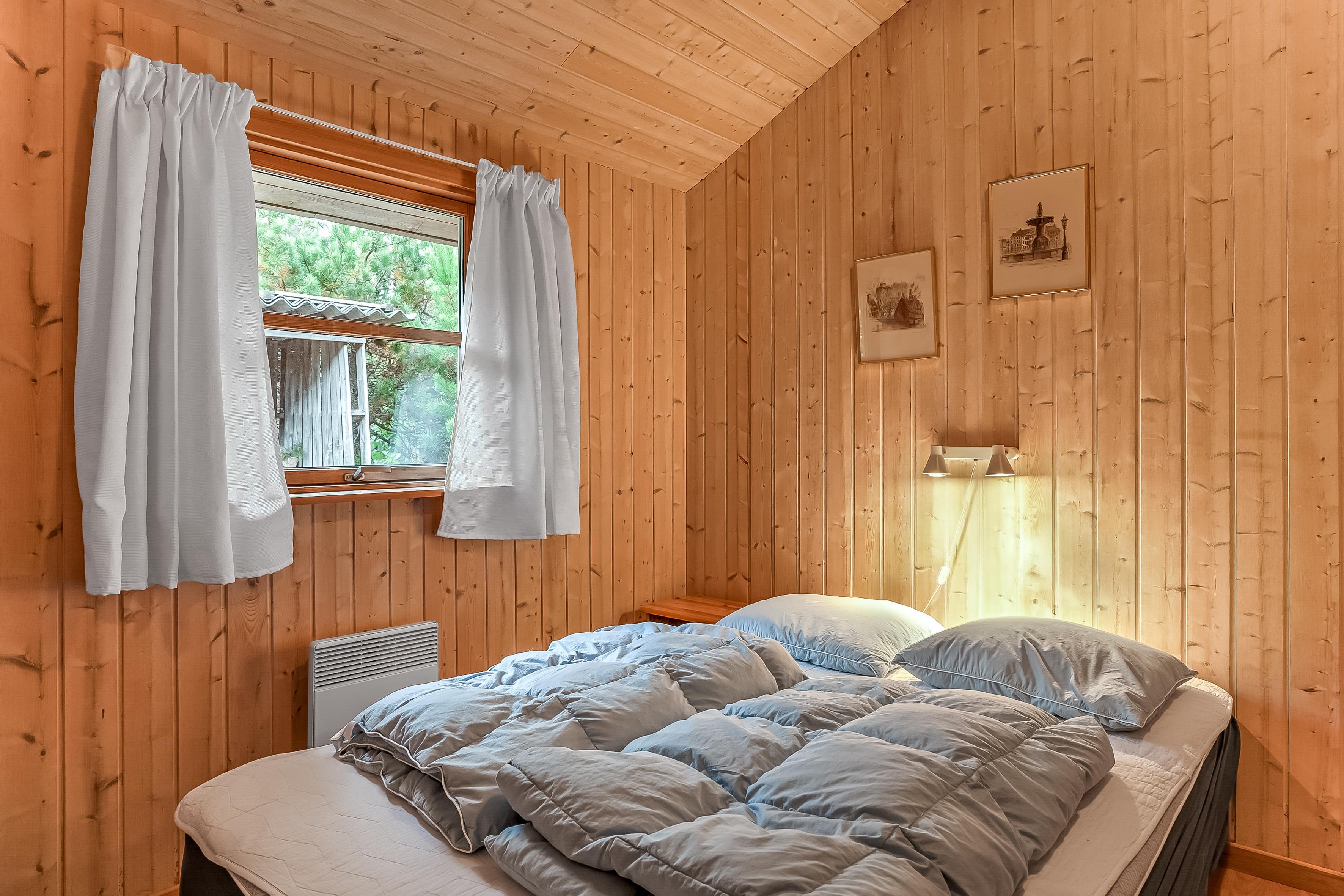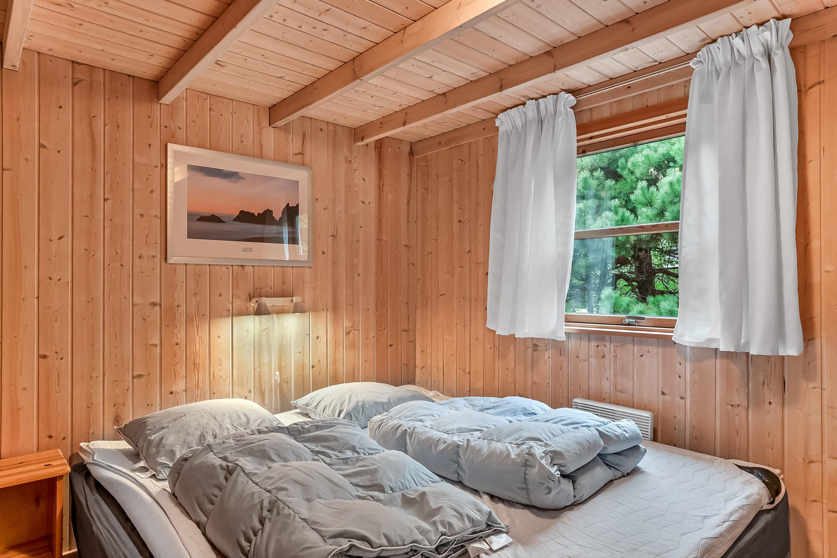 Sovepladserne er fordelt på 4 værelser med dobbeltsenge, samt en hems med plads til 4 personer på madrasser – perfekt til børnene eller ekstra gæster. Sommerhuset har to badeværelser; det største byder på gulvvarme, bruseniche, en luksuriøs 2-personers spa og direkte adgang til saunaen, mens det mindre badeværelse også har gulvvarme og bruseniche.