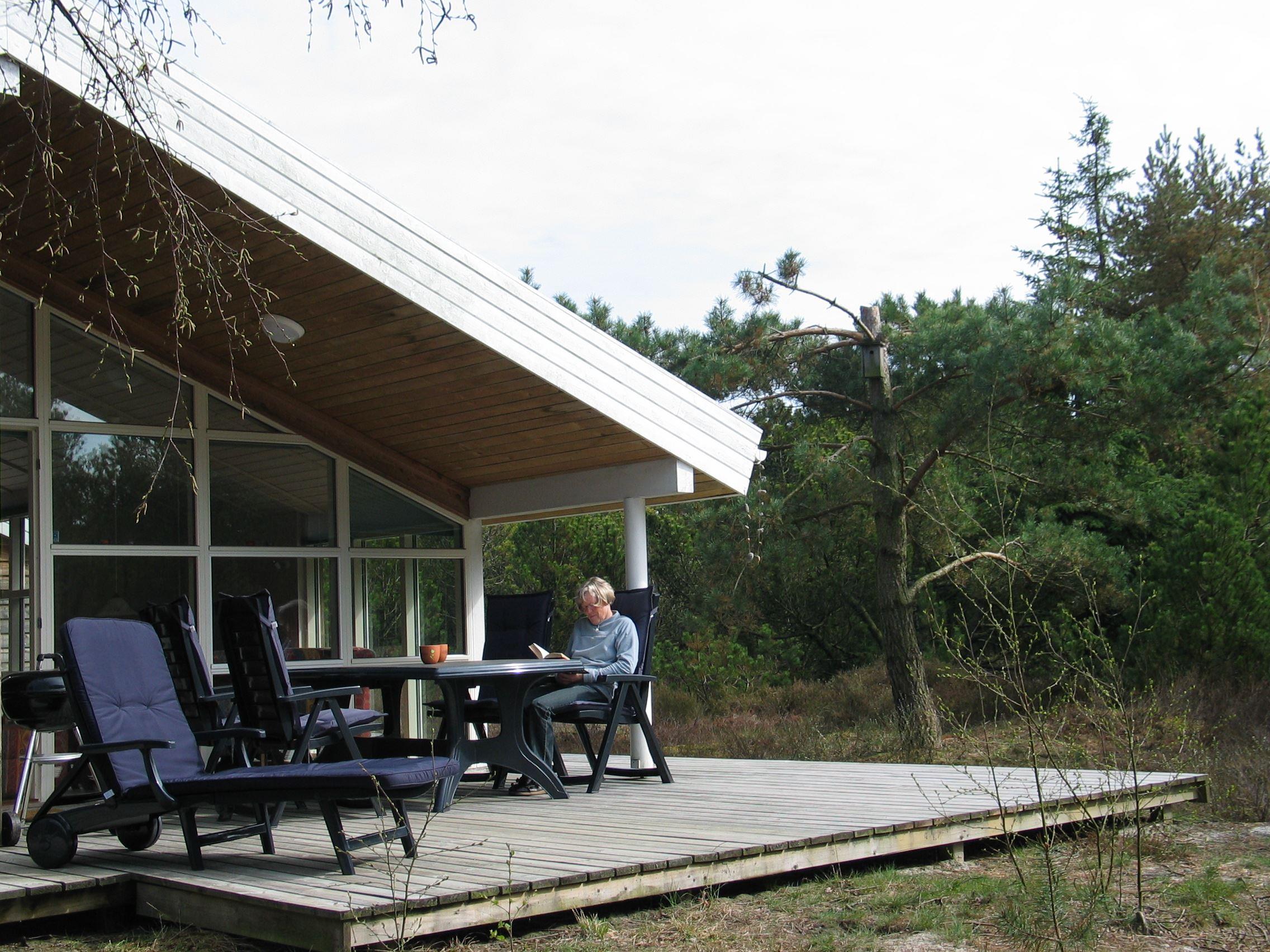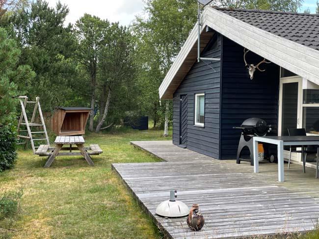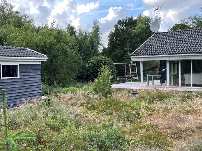 Selve huset ligger på en skøn grund med plads til leg og afslapning på den store terrasse, som går hele vejen omkring huset, eller på de hyggelige gynger som er lige ved siden af huset. Denne store smukke træterrasse har også et sted, som er overdækket. Der er intet mere afslappende end at sidde ude på terrassen og bare nyde den storslåede natur som omgiver én.