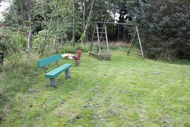 Dette sommerhus ligger på en stor grund, hvor der er masser af plads, til at børnene kan løbe rundt og lege omkring hele huset. Til børnene er der også en gynge samt andet udelegetøj, at morer sig med.