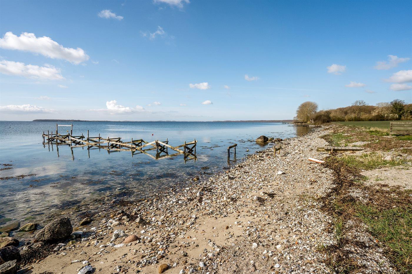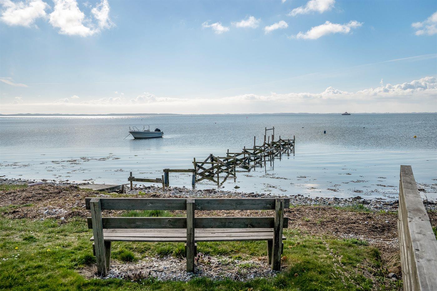 Hyggeligt sommerhus på Thurø med havudsigt, tæt på strand og fælles badebro.