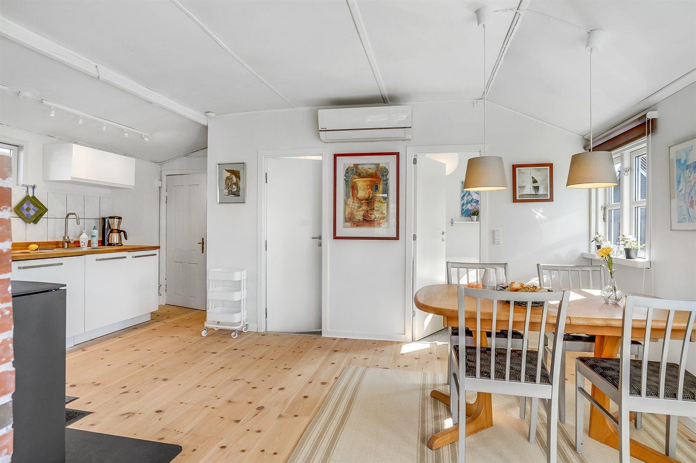 Huset er opført i 1949, gennemgik en totalrenovering i 1987 og en delvis renovering i 2015. Ferieboligen er udstyret med 1 energibesparende varmepumpe samt brændeovn. Frysekapacitet på 15 liter. Det er tilladt at medbringe 1 husdyr.