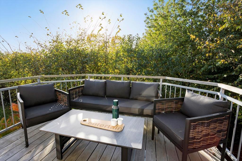 Haven er en ugenert oase, hvor børnene kan lege frit, mens de voksne kan slappe af med en god bog eller grille lækker mad på terrassen. Den rummelige terrasse indbyder til udendørs måltider under åben himmel, mens udespaet er det perfekte sted at slappe af efter en dag med udforskning af området. Her kan du lade tanker og stress forsvinde, mens du nyder den fredelige atmosfære og lyden af naturen omkring dig.