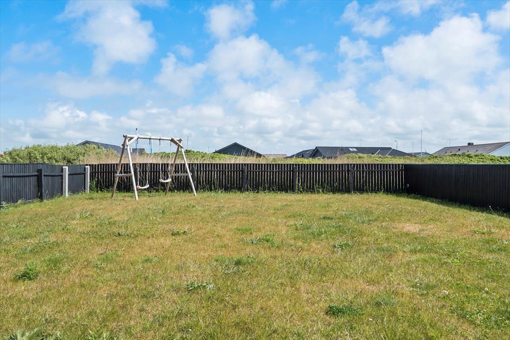 Sommerhusets have er lukket, så både børn og forældre kan slappe af i trygge rammer. Her er både gynge og sandkasse, der lægger op til timers leg i det fri, og mens de mindste graver og gynger, kan de voksne nyde solen fra terrassen eller finde ro med en kop kaffe og udsigt til det fredelige sommerhusområde. Uderummet er oplagt til både afslapning og fælles aktiviteter – måske med en omgang boldspil på plænen eller en hyggelig grillmiddag under åben himmel. Den korte afstand til stranden gør det nemt at tage en spontan tur til vandet, og efter en frisk dukkert er det skønt at komme hjem til et sommerhus, hvor komfort og hygge går hånd i hånd.
