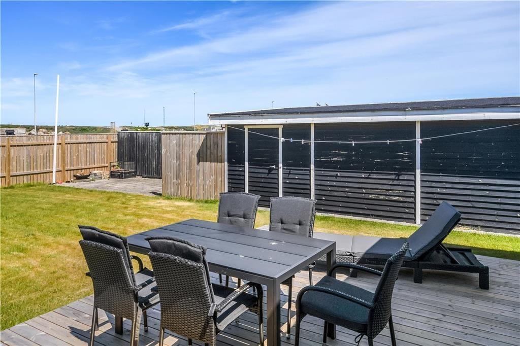 Udendørs kan du nyde livet i det vestjyske med alt, hvad det indebærer af havluft, åbne vidder og nærhed til kysten. Fra sommerhusets placering har du direkte kig til havet, og det giver en særlig ro at kunne følge himlens skiftende farver over vandet – fra morgenens blå dis til solnedgangens gyldne glød. Huset har gode uderum, hvor du kan nyde en stille morgenstund med kaffe i hånden eller tænde op i grillen og samle familien til middag under åben himmel. Du er også i gåafstand til stranden, så det er oplagt at tage håndklædet over skulderen og gå den korte tur ned til bølgerne – hvad enten du skal bade, gå tur eller bare dyppe tæerne og lade tankerne flyve. Der er noget særligt ved at være så tæt på vandet og samtidig føle sig hjemme i sine egne, hyggelige rammer.