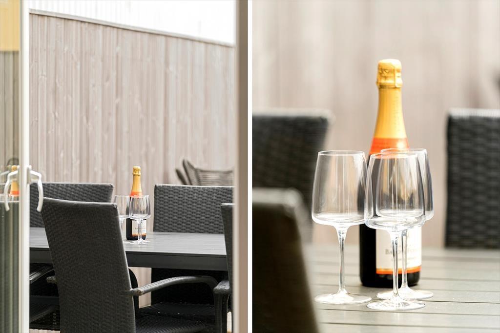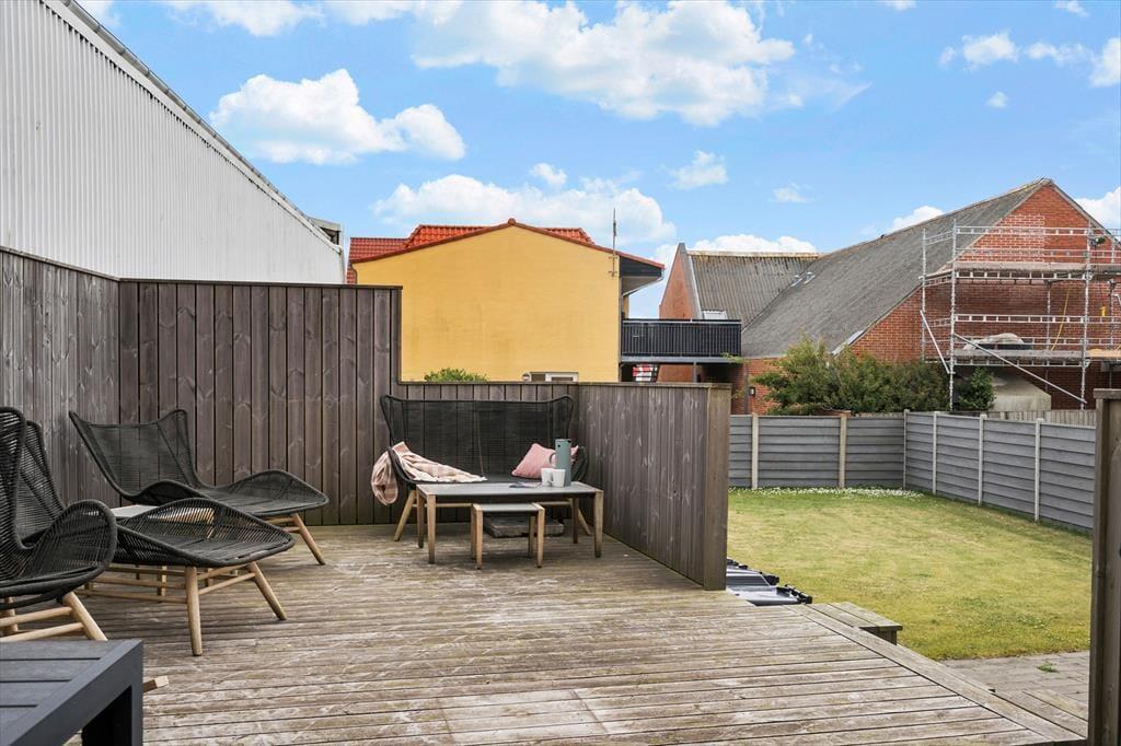 På sommerhusets skønne terrasse kan du læne dig tilbage og nyde den friske vestjyske luft, mens byens liv summer i baggrunden. Herfra kan du dufte havet, høre havnemiljøets sagte summen og mærke solen varme på en god dag. Terrassen er det oplagte sted at samles til måltider under åben himmel, og på lune aftener kan I tænde op i grillen og blive siddende, mens skumringen falder på over Thyborøn. De forskellige udendørsområder giver mulighed for både at finde ro og være sociale – og børnene kan let bevæge sig mellem inde og ude, alt efter hvad dagens humør byder på. Med byens liv tæt på, men stadig i rolige omgivelser, har du her de ideelle rammer for både afslapning og feriehygge.
