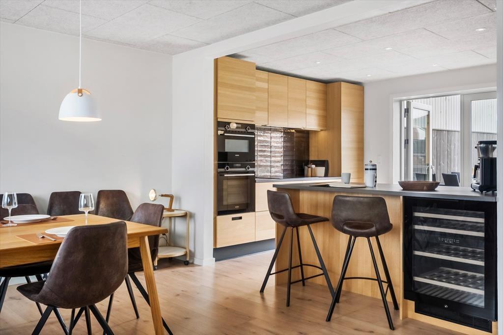 Indendørs venter en oplevelse af gennemført kvalitet og moderne komfort. Sommerhuset på Jernbanegade 3 er indrettet med øje for detaljen og har en lækker og stilren atmosfære, der straks inviterer til at finde feriestemningen frem. Flere af husets opholdsrum byder på kig til både Fiskerihallen og havet – så du er aldrig langt væk fra kystens puls, selv når du slapper af indendørs. Her er plads til, at hele familien kan hygge sig sammen, og i kælderen finder du det perfekte frirum til sjove stunder med bordfodbold og poolbord. Med sine tre etager giver huset både privatliv og plads til fællesskab – uanset om det er til en rolig morgen med kaffe eller en aften med spil og grin rundt om bordet.
