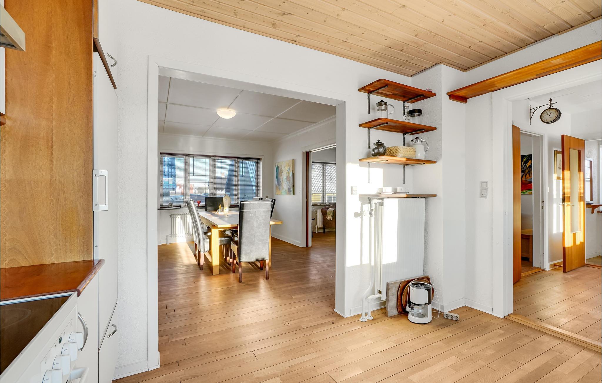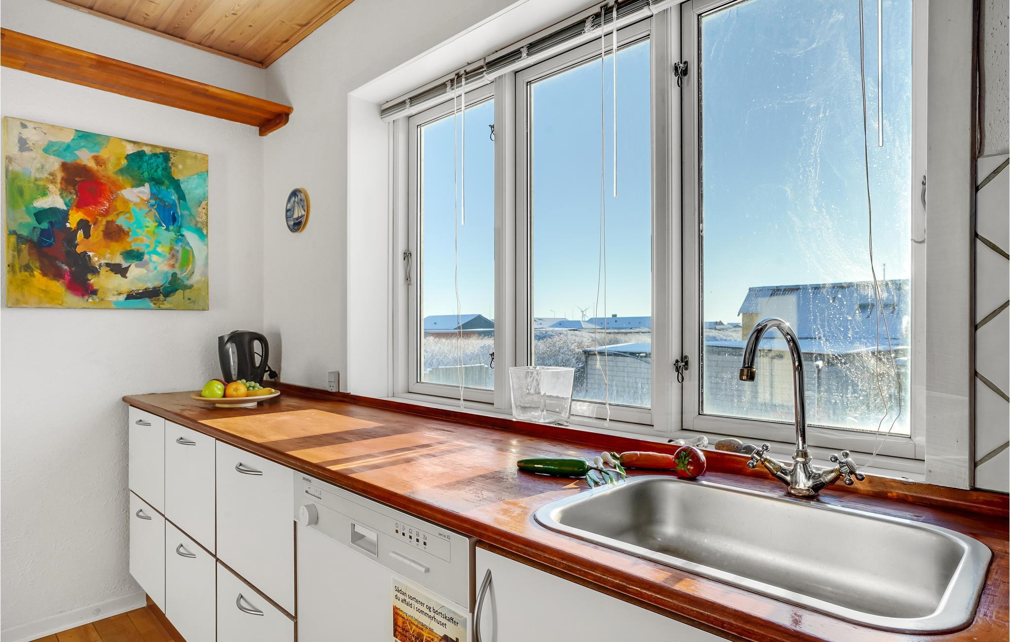 Lige ud til Thyborøn Strand ligger dette skønne feriehus, hvor der er dejlige rammer og god plads til en familie. Her kan I se frem til nogle dejlige fællesrum med et flot lysindfald og varme farver. I sommersæsonen kommer I sikkert til at bruge en god del af tiden på terrassen, hvor I kan grille og slappe af med udsigt til haven.