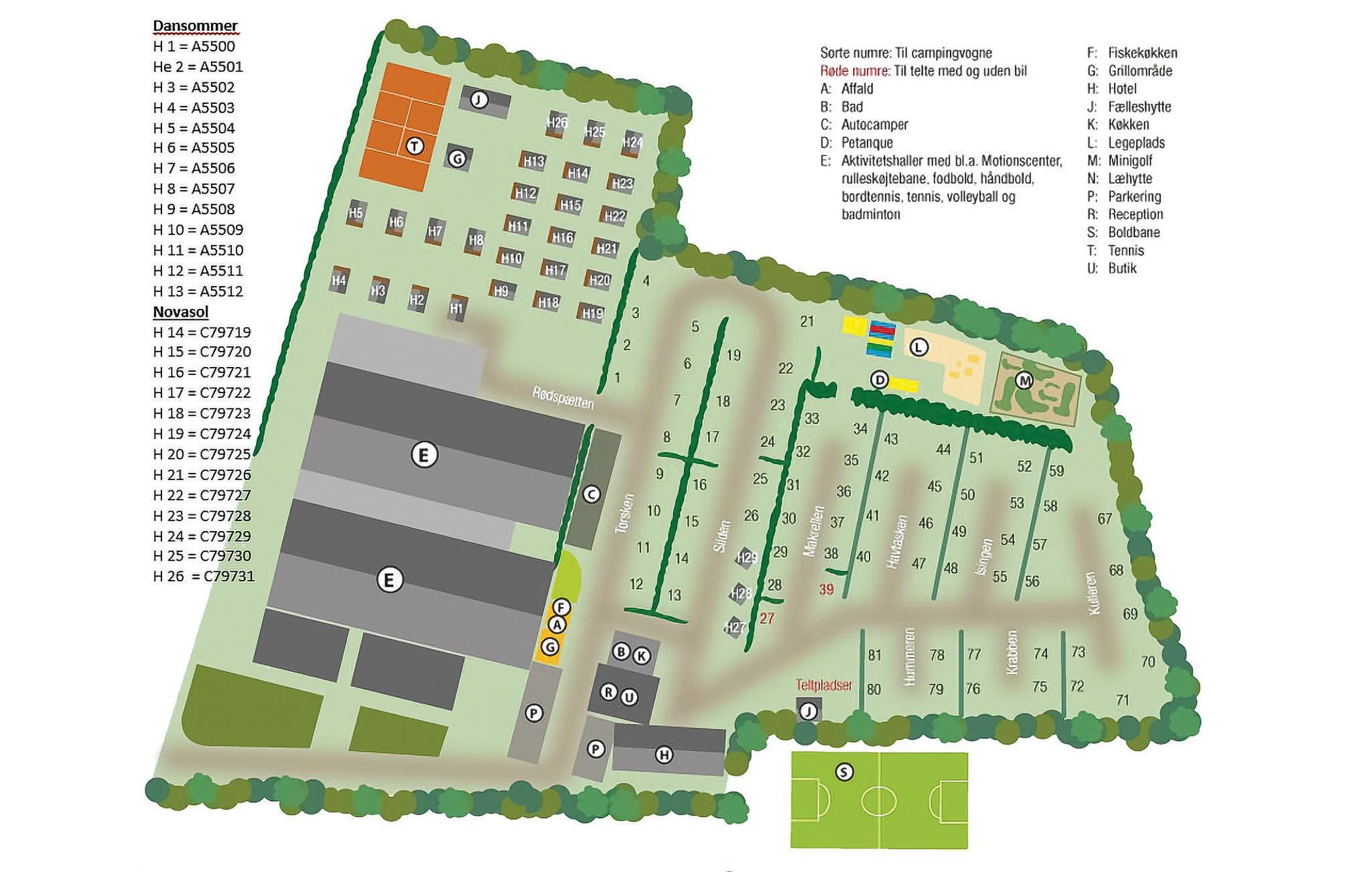 Pladsen er en lille hyggelig familieplads med masser af gratis aktiviteter for store og små. Der er bl.a. legeplads, minigolf og boldbaner. Der forefindes også en hoppepude og legerum for de mindste. Skulle vejret drille, kan I benytte de to store haller, der byder på mange forskellige aktivitetsmuligheder som fodbold, håndbold, tennis m.m.