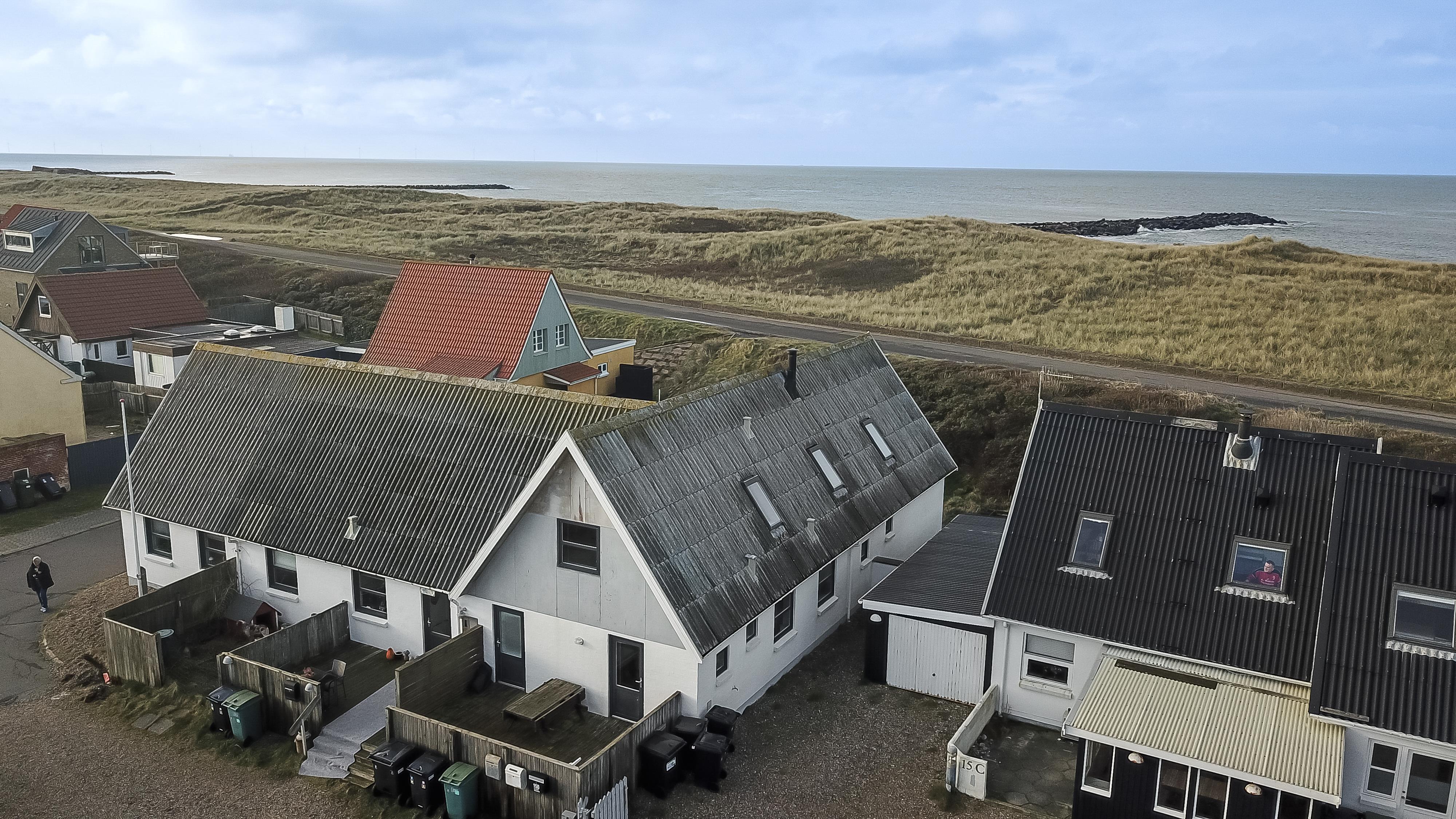 Dette charmerende feriehus har plads til op til 5 personer og ligger i første række ved stranden i Thyborøn, kun 50 meter fra havet. Fra første sal kan I nyde en betagende panoramaudsigt over klitterne ved Vesterhavet. Huset tilbyder gratis internetadgang.