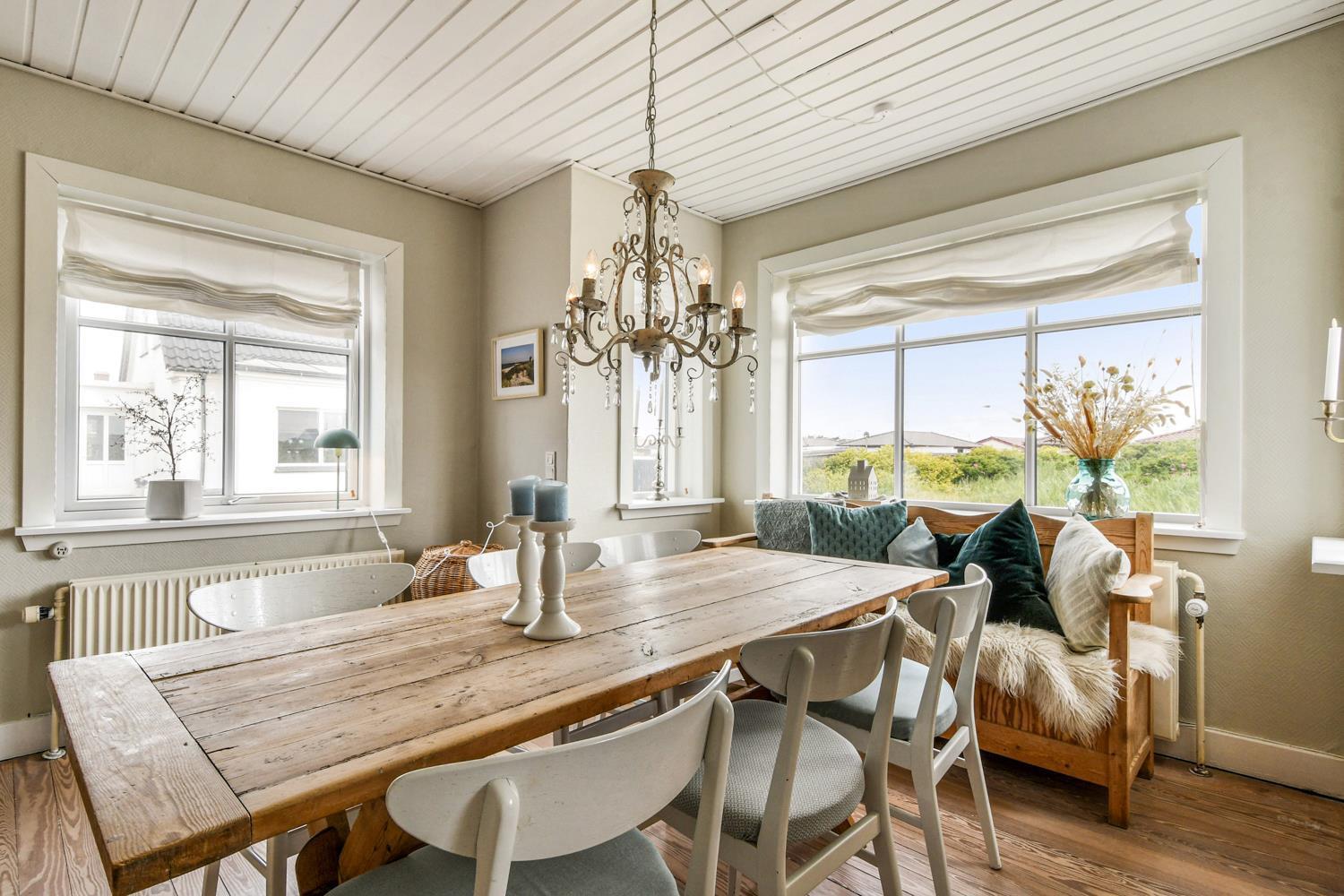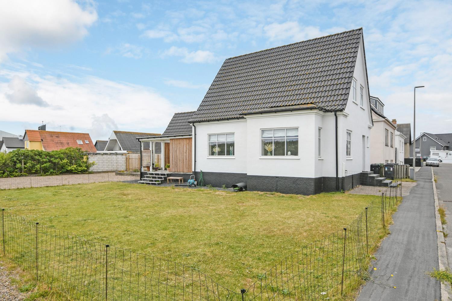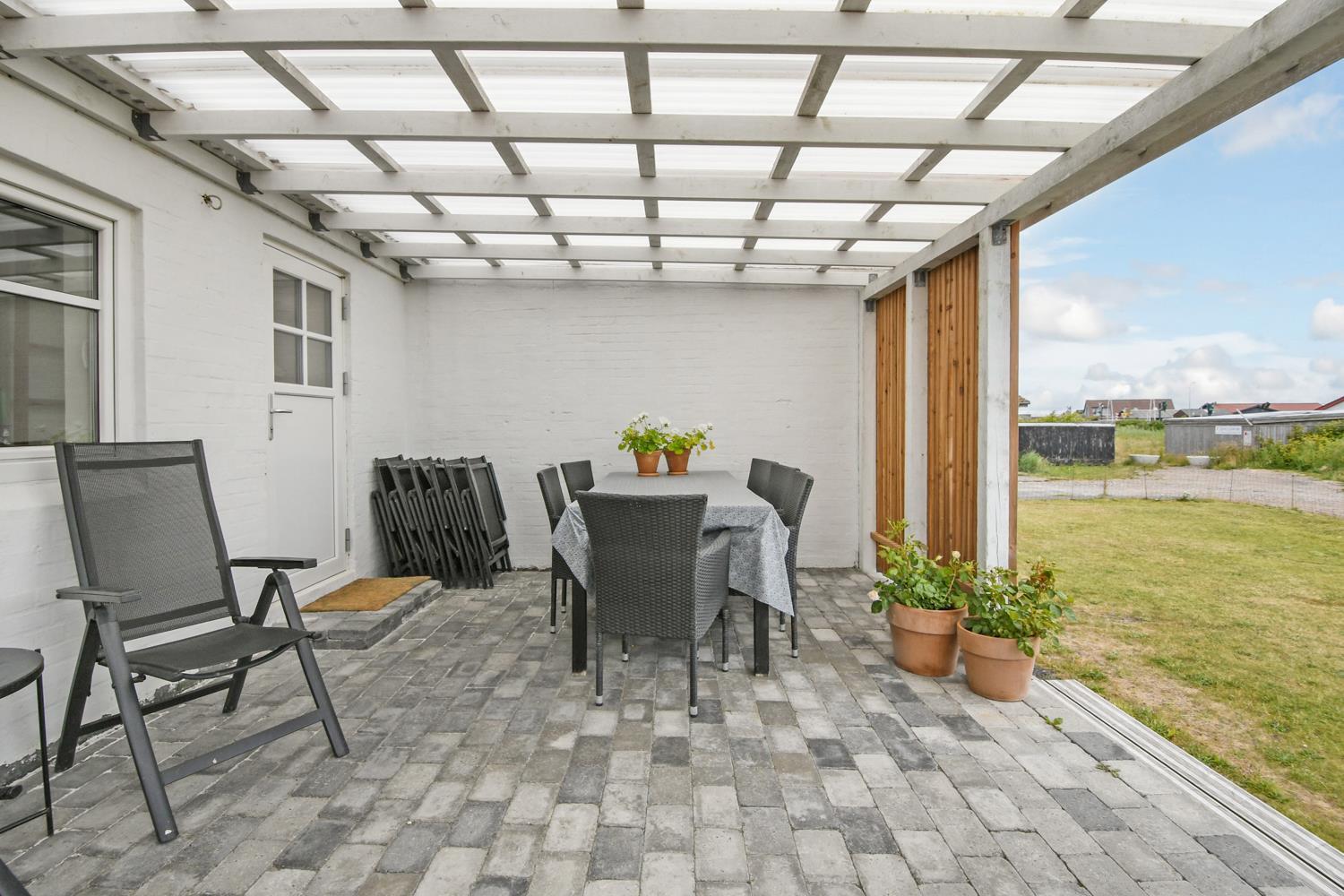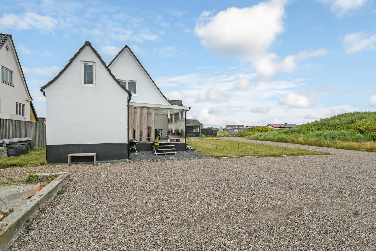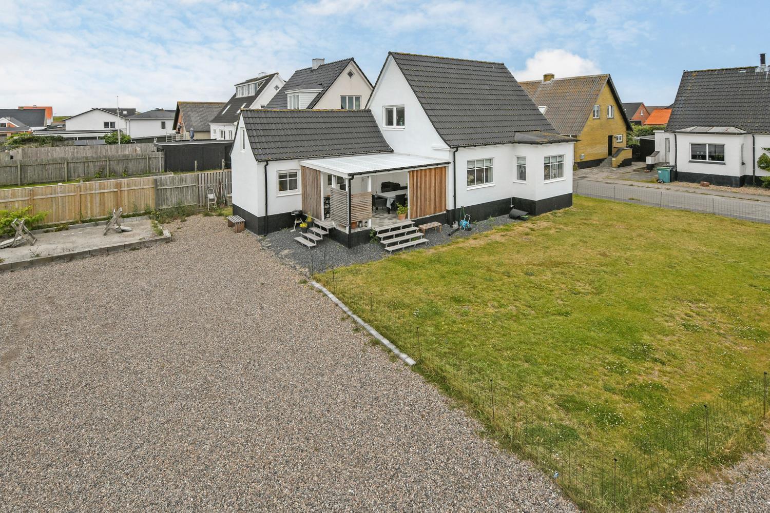 Huset ligger for enden af en rolig sidevej. Dejlig velholdt grund med ekstra havemøbler og masser af plads til boldspil og andre udendørs aktiviteter. Fra baggangen er der afgang til en dejlig, overdækket træterrasse med havemøbler, grill og liggestole. Hold en hyggelig grillaften og hør på bølgernes brusen i baggrunden. Besøg Jyllandsarkvariet, Kystcenteret, Seawar Museum, inviter familien ud at spise, eller lav lækre indkøb af frisk fisk eller andre gode detailvarer eller gå eller løb en tur ved Vesterhavet, som hver dag byder på nye oplevelser. Alt dette er muligt, indenfor 1000 m fra huset. Et helt igennem hyggeligt hus som er pænt istandsat.
