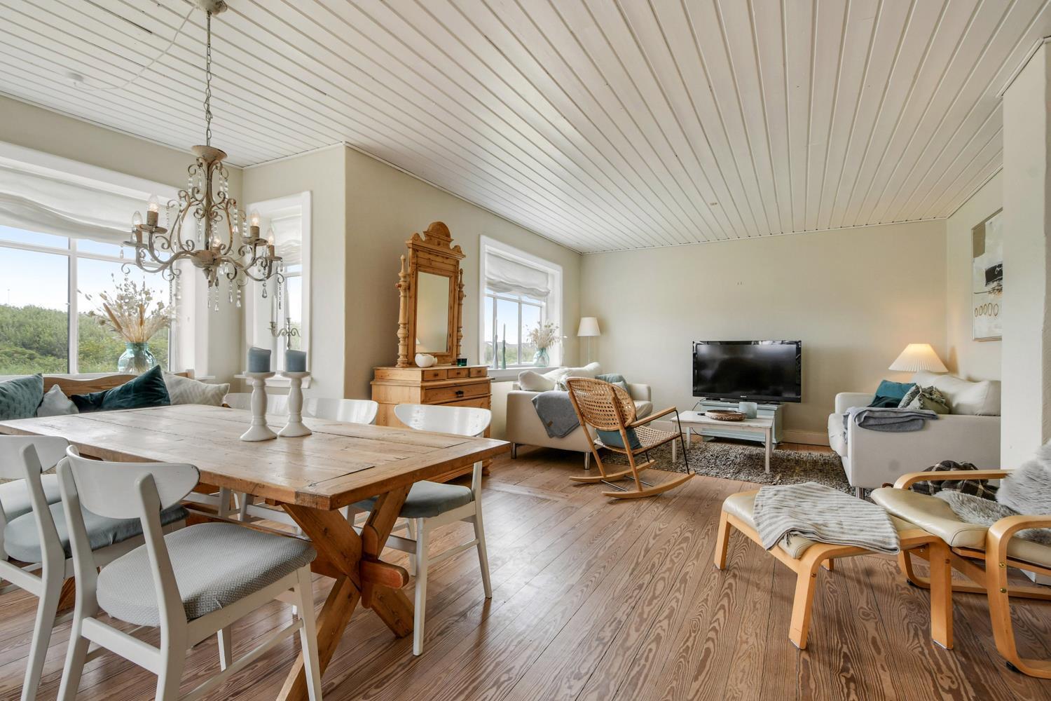 Hyggeligt, roligt beliggende, helårs hus i 2 plan med gratis Internet. Vesterhavet ligger ca. 200 m fra huset. Ejer har indrettet huset så der er en følelse af nostagisk feriehus- og badehotelsstemning. Dette ses bl.a. i valget af møbler.