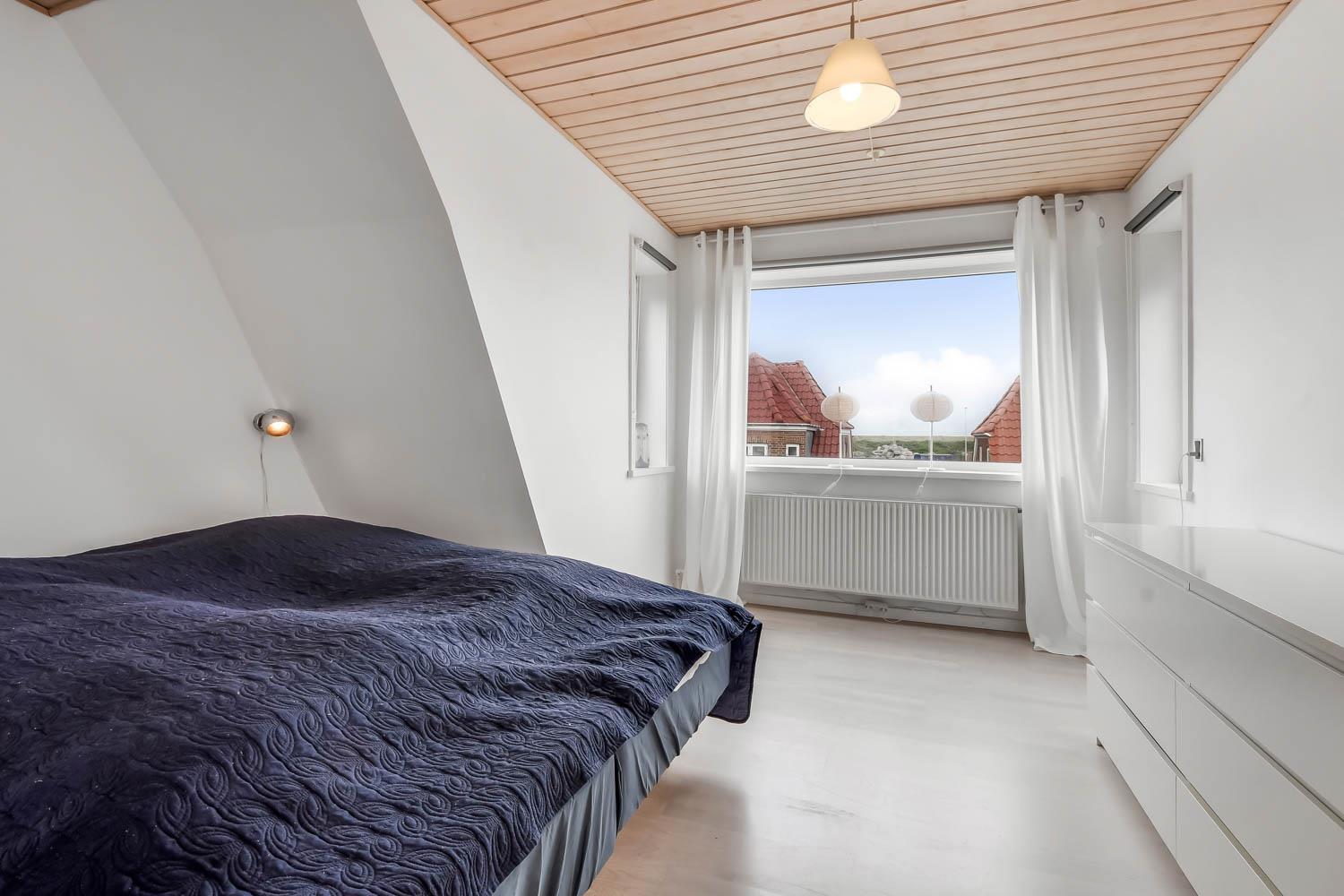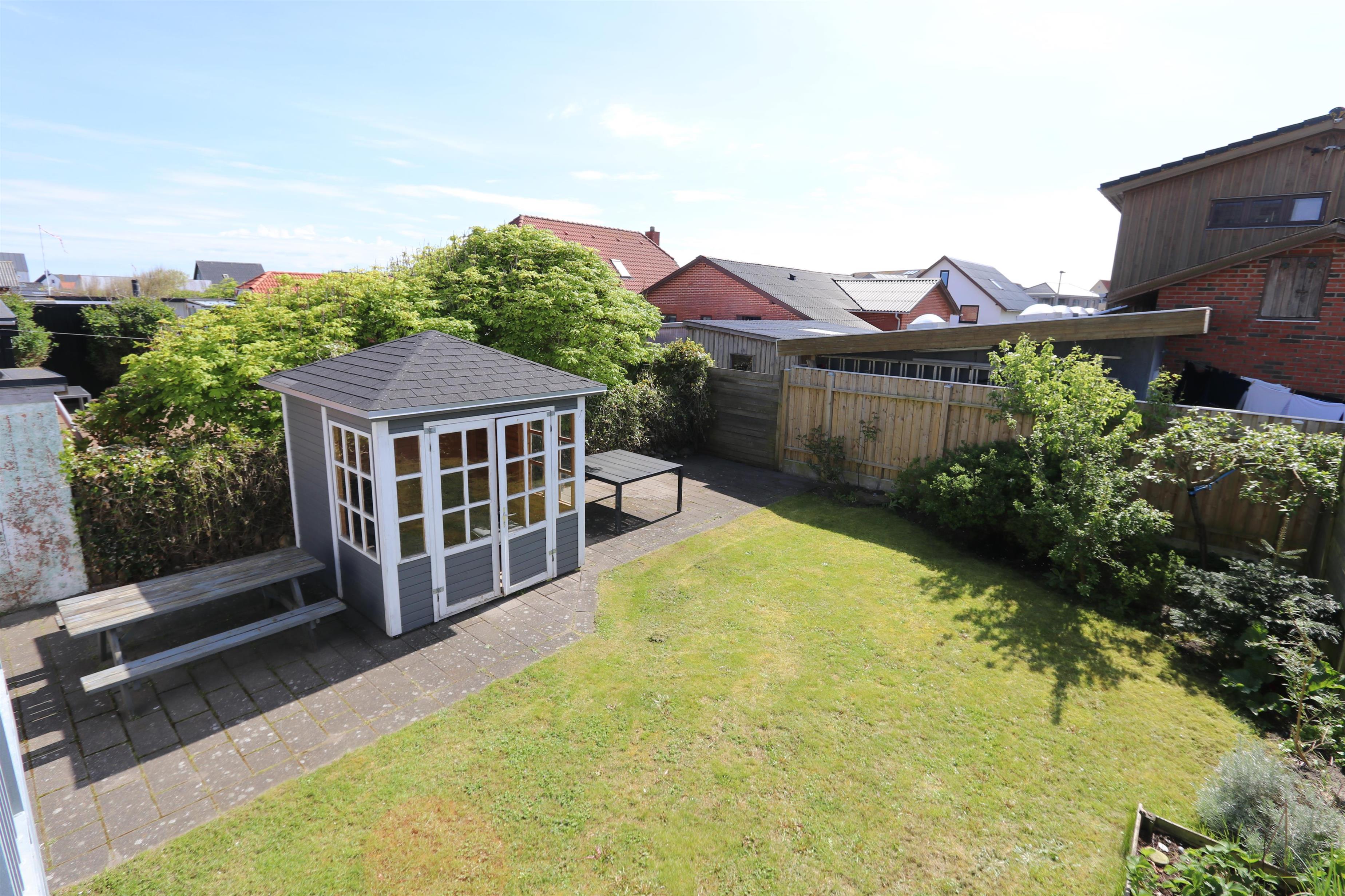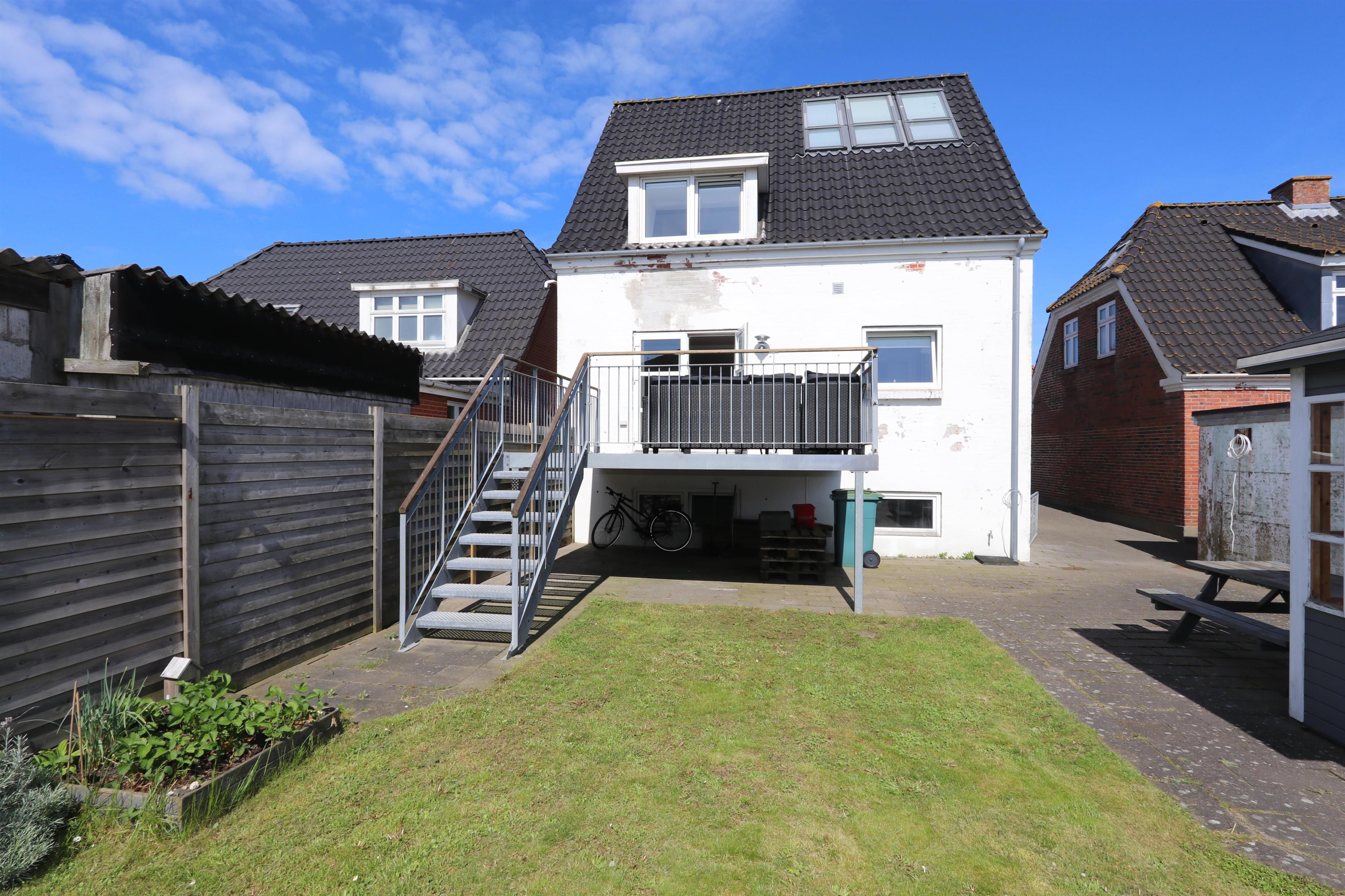 122 m2 stort helårshus med fjernvarme, gratis internetadgang og 65 m2 kælder. En funktionel entré byder velkommen og fører jer til husets forskellige etager. I stueplan ligger køkkenet og opholdsstuen. Køkkenet er veludstyret med et komfur med glaskeramiske kogeplader, emhætte, ovn, køleskab, mikroovn og opvaskemaskine. Opholdsstue med lædermøbler, Smart-tv, streaming, tysk, svensk og norske kanaler samt udgang til dejlig terrasse I niveau med havemøbler, 2 solvogne og grill. Terrassen og lille have med pavillon ligger mod øst/syd i læ for vestenvinden. Trappe til første sal med rummeligt badeværelse med bruseniche, toilet og håndvask samt 2 store soveværelser (1DS) (1 trekvart og 1ES). Trappen fortsætter til 2. sal, hvor der er et kombineret opholdsrum med biopejs og soveværelse (1DS) og flot udsigt til hav og klitterne ved Vesterhavet. Entre med trappe til kælderrum med fryser, vaskemaskine og tørretumbler og mulighed for at opbevare fiskegrej og surfudstyr. Rygning og husdyr er ikke tilladt.
