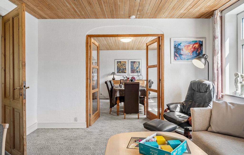 Nyd jeres ferie i dette feriehus, der kombinerer landlig karakter med god plads til alle. Træd ind i de behageligt møblerede stuer. Hyg jer sammen i sofaen foran tv'et, eller tilbring rolige aftener i den tilstødende spisestue. Begge værelser er forbundet med en smuk fransk dør og tilbyder masser af lys og plads. Møblerne er enkle og hyggelige med naturlige materialer og diskrete farver. I det rummelige køkken har I alt, hvad I behøver for at lave mad sammen eller nyde en hurtig morgenmad i spiseområdet.