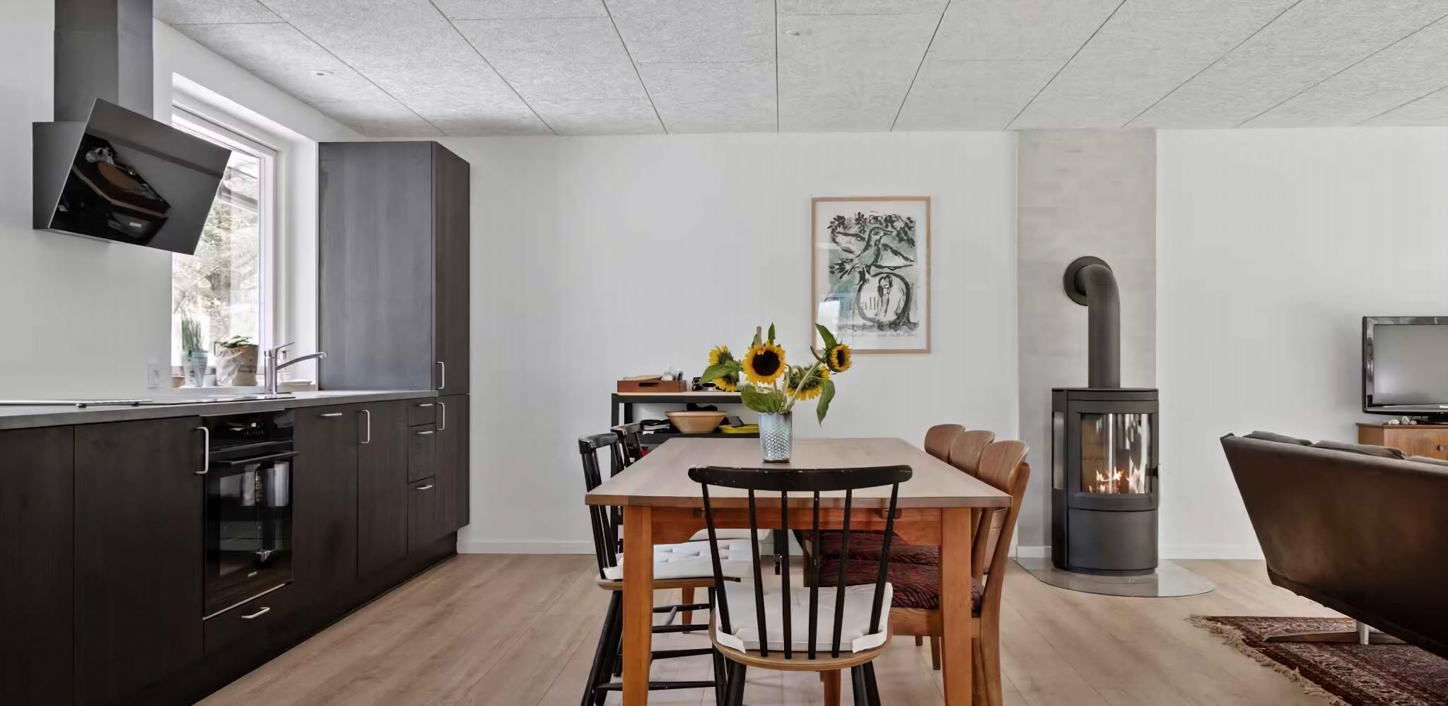 Dette nyrenoverede sommerhus fra 2024 ligger i første række med kun 75 meter til vandet. Her får I en fantastisk beliggenhed tæt på naturen og et komfortabelt ophold. Huset er 124 m² og rummer tre soveværelser med plads til seks personer. Den velindrettede planløsning gør det ideelt til både familier og vennegrupper. I det åbne køkken-alrum er der varmepumpe og brændeovn, der sikrer et behageligt indeklima året rundt. Her kan I samle jer til hyggelige måltider og afslapning. Internetadgang gør det let at kombinere ferie med arbejde eller underholdning. Huset er udstyret med moderne faciliteter og indbyder til både afslapning og praktisk anvendelse. Den store terrasse og den udendørs bruser med både varmt og koldt vand er perfekte til sommerdage. Her kan I nyde udsigten, grille og tage et forfriskende bad efter en tur til stranden. Området omkring huset byder på en unik kombination af kyst og natur. Langs stranden kan I finde små stier til gåture og opleve det varierede dyreliv. De nærliggende landsbyer tilbyder spændende lokale specialiteter, små butikker og hyggelige caféer. Der er også gode muligheder for at fiske eller sejle. En tur rundt på halvøen afslører storslåede udsigter, historiske seværdigheder og mange aktiviteter for både børn og voksne. Her kan I skabe minder, der varer ved. Dette sommerhus er det oplagte valg for dem, der søger et moderne hjem tæt på naturen. Bestil jeres ophold nu og oplev det selv. Obs, udlejes ikke til erhversmæssigt brug.