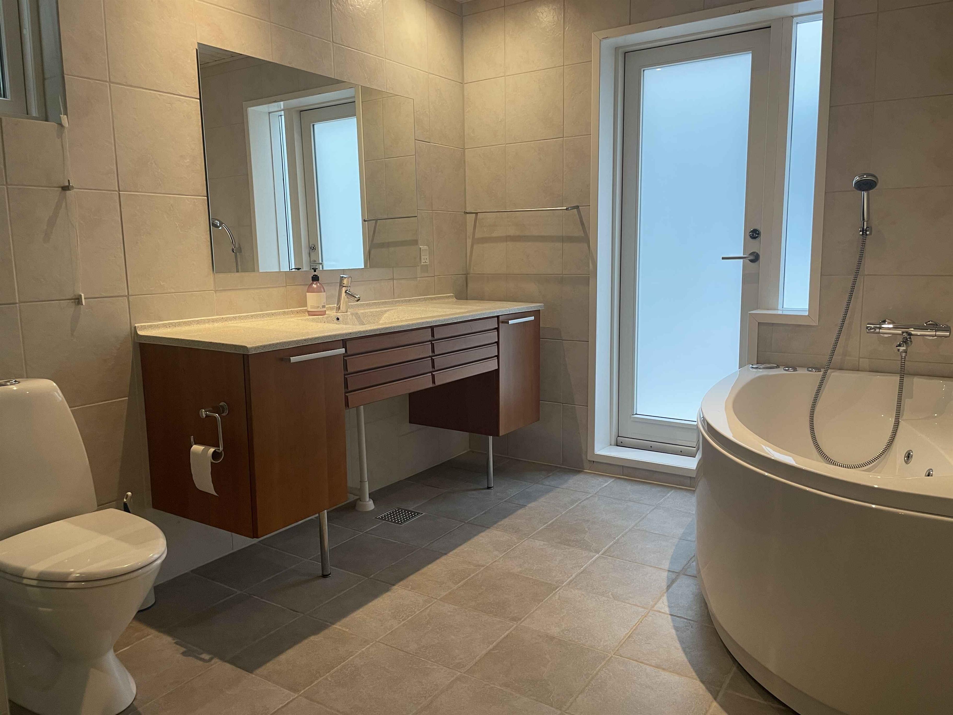 Et dejligt, rummeligt sommerhus med plads til nærvær og afslapning. De 300 m² rummer seks separate soveværelser med i alt seks sovepladser, hvilket gør huset oplagt til to familier, der rejser sammen. Her er tænkt på ro, hygge og samvær frem for skærme og elektronik. Huset ligger i et stille område med fredelige omgivelser og god plads både inde og ude. Den store terrasse, grillplads og den velholdte have indbyder til udendørsliv og lange sommeraftener. En rummelig udestue giver mulighed for at forlænge dagen, også når vejret er skiftende. Indendørs er huset fuldt møbleret med alt, hvad man har brug for. Et stort spisebord samler gæsterne til fælles måltider, mens sofaer og loungestole giver plads til afslapning. Der er tv-rum, wifi og klassiske brætspil til de stille aftener. Området omkring huset er rigt på naturoplevelser. Tæt på finder du skove, stier og en sø, der indbyder til gåture og udsigtspauser. Kysten ligger blot 6 km væk med flere hyggelige strande og småbyer, der er perfekte til en dagsudflugt eller en is i solen. Det er et oplagt sted til ferie, hvor tempoet sænkes, og der er tid til at være sammen. Uanset om du vil udforske naturen eller bare nyde roen hjemme, danner huset og omgivelserne en ideel ramme om en afslappet og indholdsrig ferie. Obs, udlejes ikke til erhversmæssigt brug.
