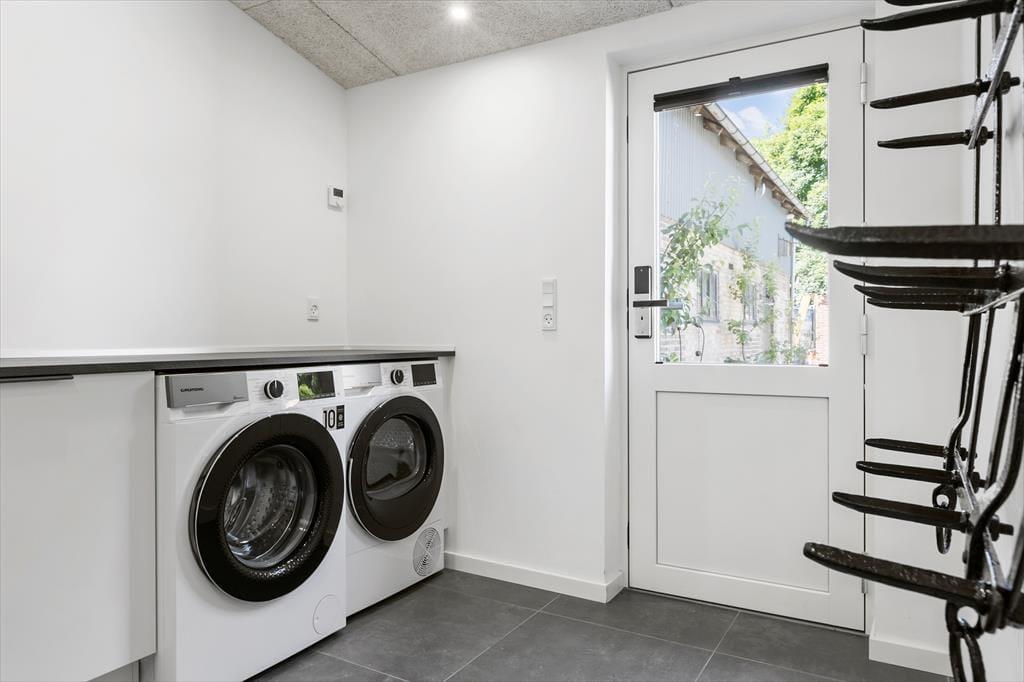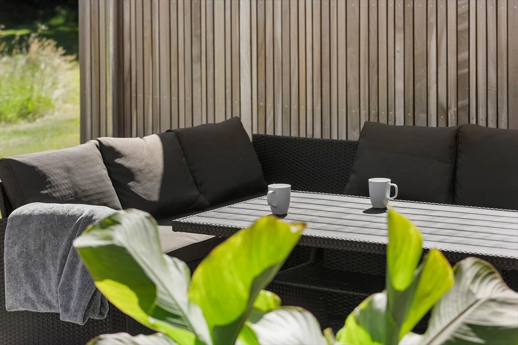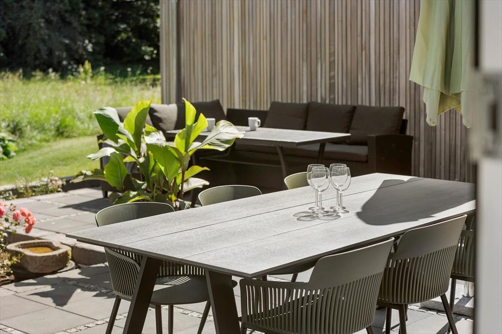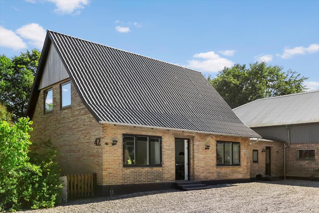 Det omkringliggende udeområde er som skabt til livsnyderi under åben himmel. Den hyggelige have er indrammet af buske og træer, som skaber både læ og privatliv, og flere små kroge inviterer til afslapning med tæppe og tekrus eller en god samtale ved havebordet. Her kan du nyde morgenmaden i solen, tage en stille lur i skyggen eller lade børnene lege frit i den trygge have. En velanlagt terrasse gør det let at rykke måltiderne udenfor – og på lune sommeraftener bliver grillen hurtigt centrum for både madlavning og fællesskab. Lydene af fuglefløjt og vinden i træerne fuldender oplevelsen, og du mærker hurtigt, hvordan pulsen falder, og nærværet vokser i takt med roen omkring dig.