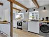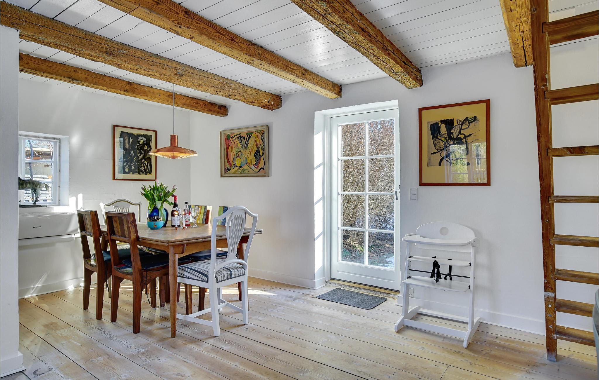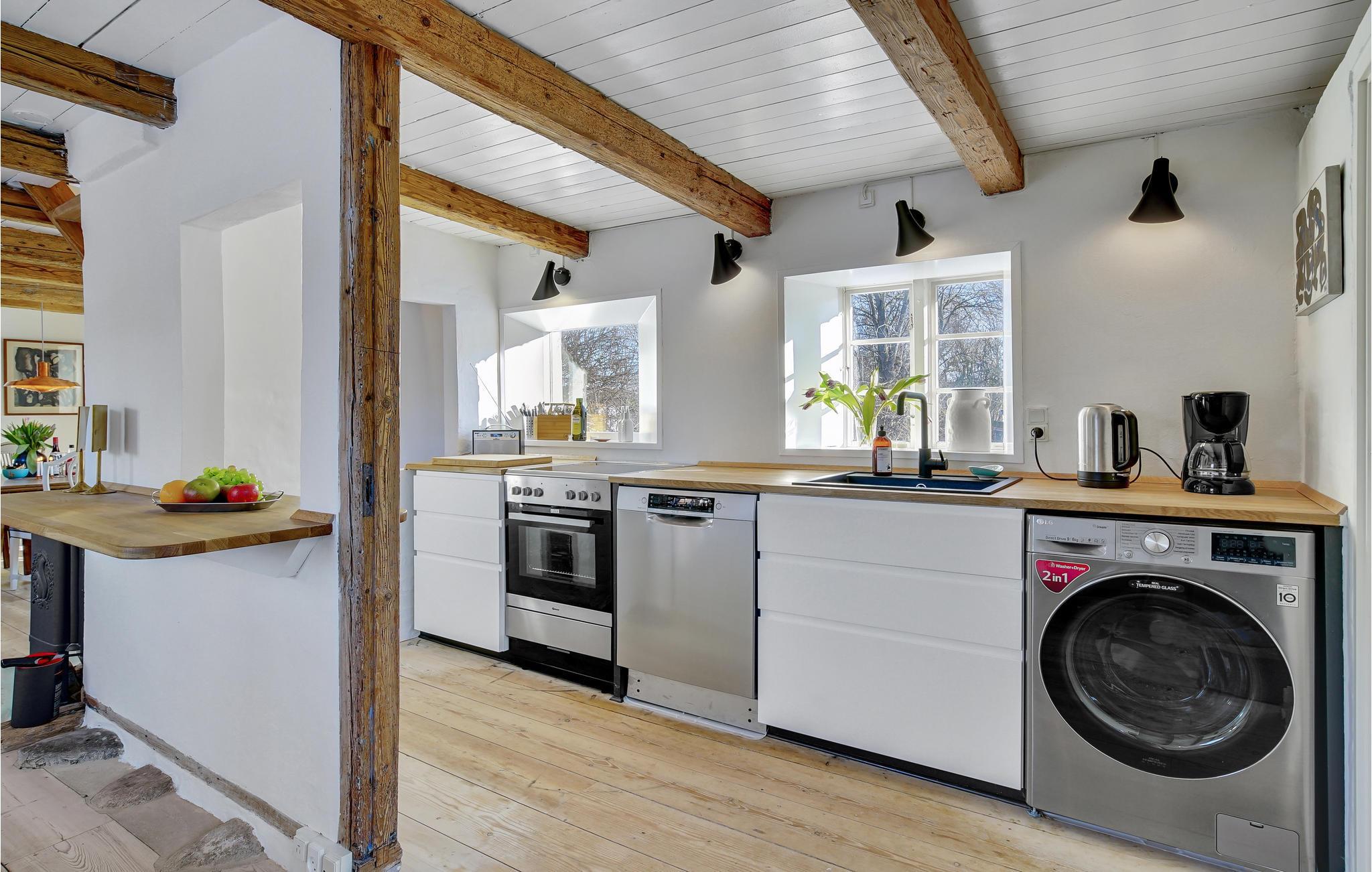 Et meget specielt sommerhus venter jer her, og selvom I kan se den lange historie udefra, finder I alle slags moderne bekvemmeligheder i huset. Nogle af de originale elementer, såsom de synlige træbjælker, er blevet bevaret og danner en flot kombination med de nutidige møbler. Vinduerne har dobbeltruder. Bemærk: Trappen til første sal er ikke velegnet til bevægelseshæmmede, øverst kan I stå oprejst midt i rummet. Huset er velegnet til et par eller den lille familie. Her er får I skønne rammer om et fredeligt og idyllisk ophold.