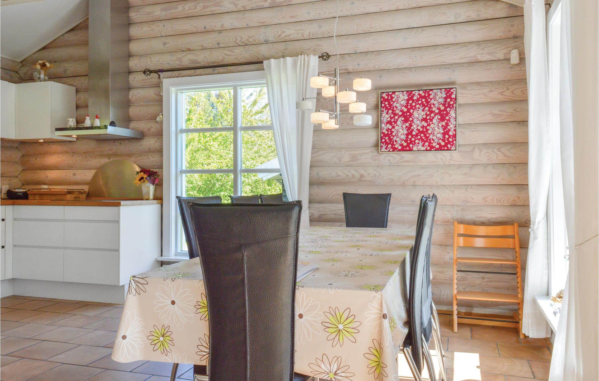Et skønt bjælkehus beliggende i et attraktivt sommerhusområde på en stille, lukket vej. Huset er udstyret med mange gode faciliteter og har fin plads til alle. Det dejlige, store køkken ligger i åben forbindelse med spisepladsen og den charmerende stue, der indeholder en hyggespredende brændeovn. Tre gode soverum og et pænt badeværelse med spabad til 2 personer. Fra flere rum i huset er der udgang til den store terrasse, hvor I kan nyde solen. Desuden findes der en skøn overdækket terrasse, hvor I kan trække ind om aftenen når duggen falder. Masser af plads på grunden til familiens udfoldelser.