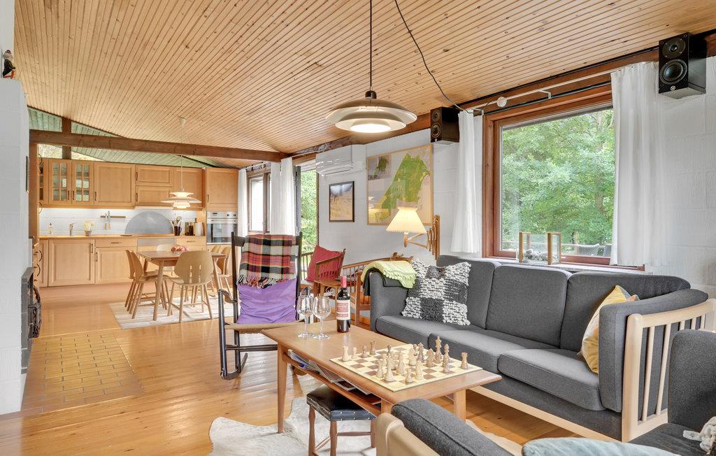 Velkommen til dette sommerhus, der med tre soveværelser kan rumme seks personer og to kæledyr. Nyd nogle afslappende aftener på sofaen med knitrende ild i brændeovnen eller med en god bog - den perfekte pause fra hverdagen. Der er også et køkken-alrum, hvor I kan samles om måltiderne.