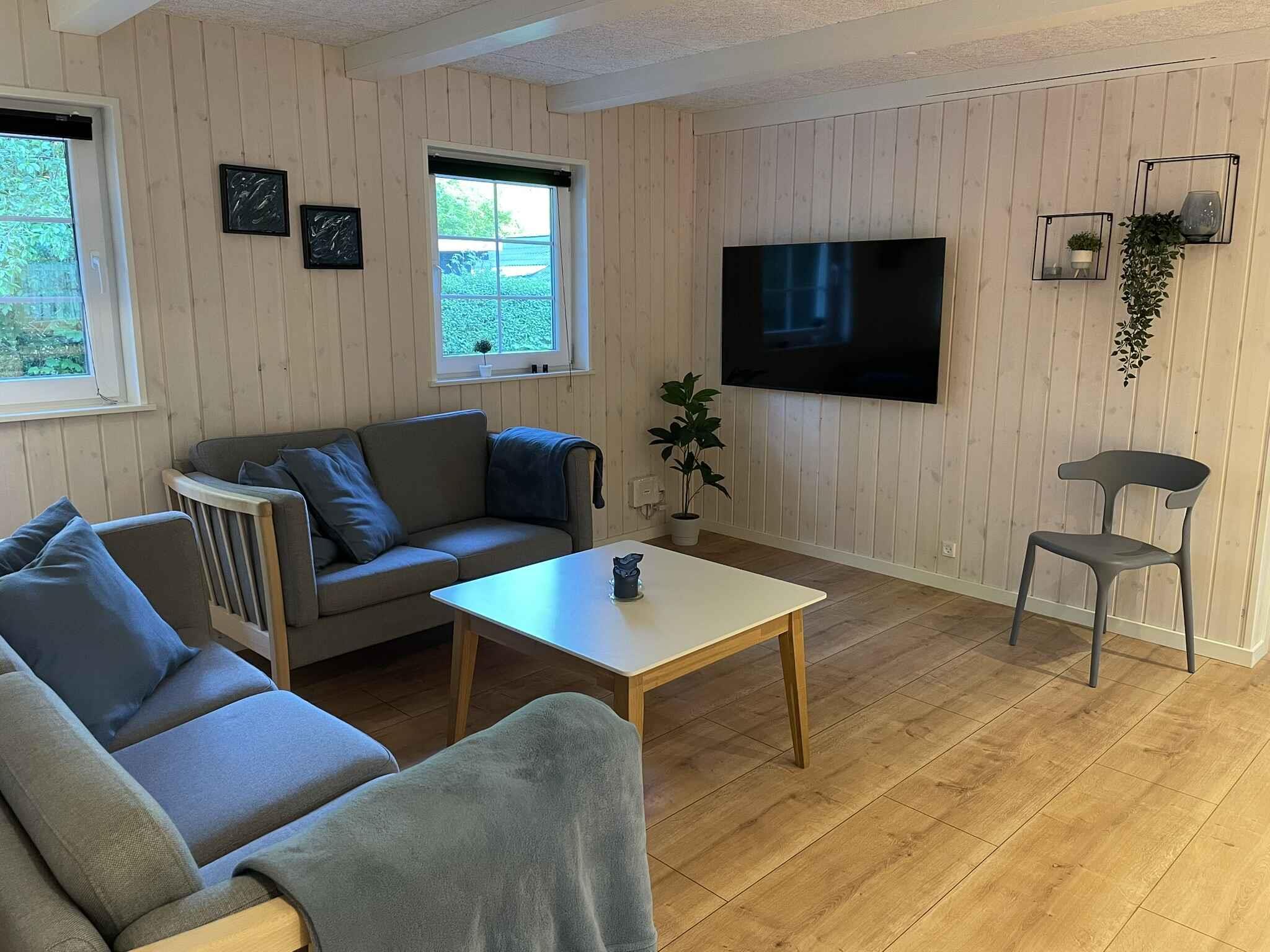 Hyggeligt, nyrenoveret sommerhus i Arrild Ferieby med stor terrasse, trampolin og børnevenlige faciliteter.