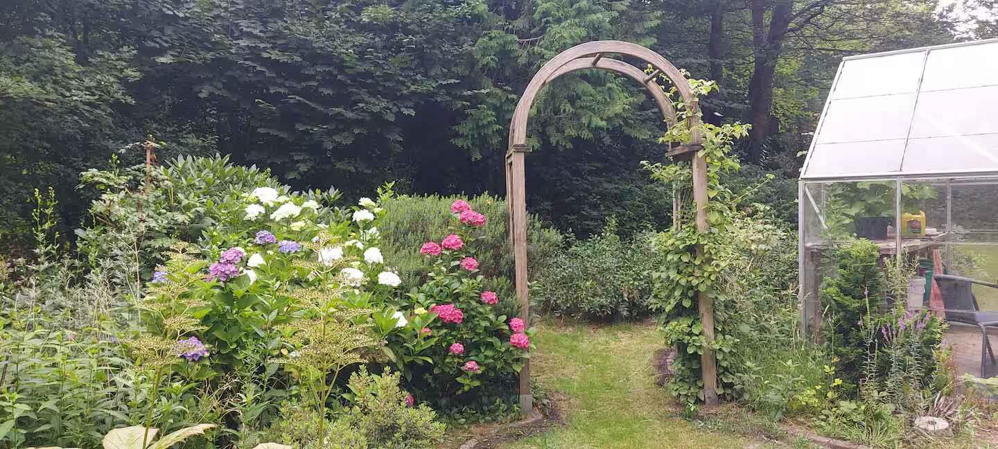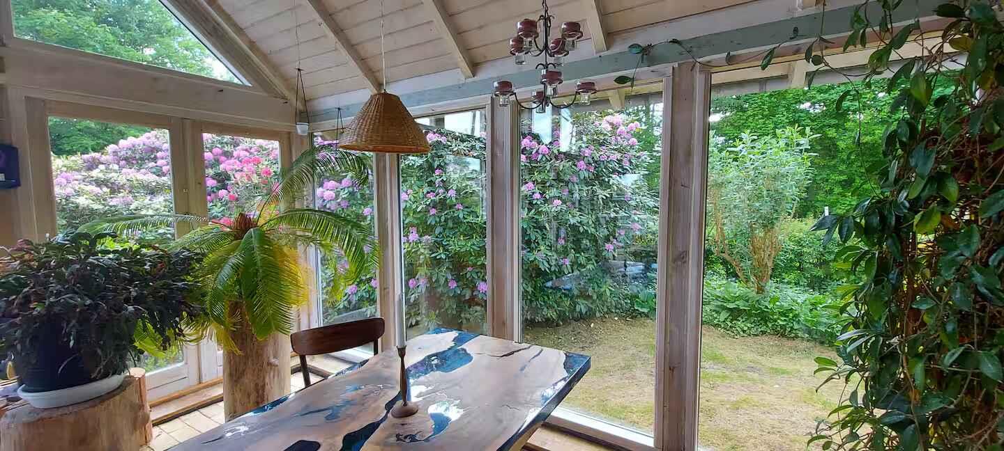 Hyggeligt hus med unik havestue nær Arrild Ferieby og kun 33 meter fra vandet, perfekt til en afslappende ferie i naturskønne omgivelser.