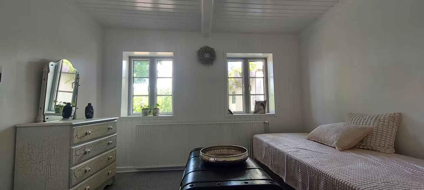 Denne feriebolig på 105 m² er velegnet til en afslappet ferie for op til fire personer. Huset er indrettet med fokus på lys, udsigt og en rolig atmosfære, hvor opholdet let tilpasses både korte og længere ferier. Boligen har to soveværelser med i alt fire sovepladser. Indretningen er enkel og funktionel, så der er god plads til både hvile og privatliv efter en dag fyldt med oplevelser i området. En særlig kvalitet ved huset er den unikke havestue, som trækker naturen helt ind i boligen. Her kan I nyde måltider, læse eller slappe af med udsigt til omgivelserne og skiftende lys gennem dagen. Opholdsarealerne suppleres af brændeovn og centralvarme, som sikrer komfort året rundt. Internet er til rådighed, så både underholdning og praktiske gøremål kan klares under opholdet. Huset ligger på en stor naturgrund med æbletræer og frit udsyn til åbne marker. Der er blot 33 meter til vandet, hvilket giver en sjælden nærhed til naturen og mulighed for at nyde stilheden og udsigten flere gange dagligt. Området omkring ferieboligen byder på mange feriekvaliteter. Den direkte nabo, Arrild Ferieby, giver adgang til badeland, golfbane, legepladser og spisesteder, hvilket gør området attraktivt for både par og familier. Samtidig er omgivelserne præget af åbne landskaber, rolige veje og gode stier, som indbyder til gåture og cykelture. Her er plads til at koble af, nyde naturen og finde et roligt ferietempo uden lange afstande mellem oplevelserne. Denne feriebolig er et oplagt valg for jer, der ønsker god plads, naturnær beliggenhed og let adgang til aktiviteter. Her er rammerne sat for en ferie med ro, nærvær og tid til hinanden. Obs, udlejes ikke til erhversmæssigt brug.