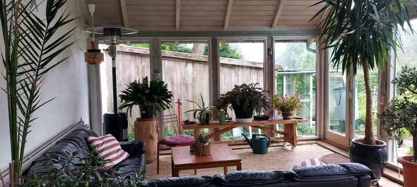 Dejlig feriebolig, unik havestue som trækker naturen ind i huset, ligger på stor naturgrund med æbletræer, brændeovn, internet, udsigt til åbne marker, centralvarme, ligger lige ved siden af Arrild Ferieby