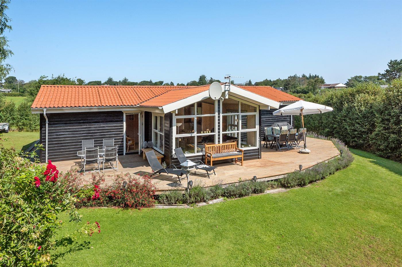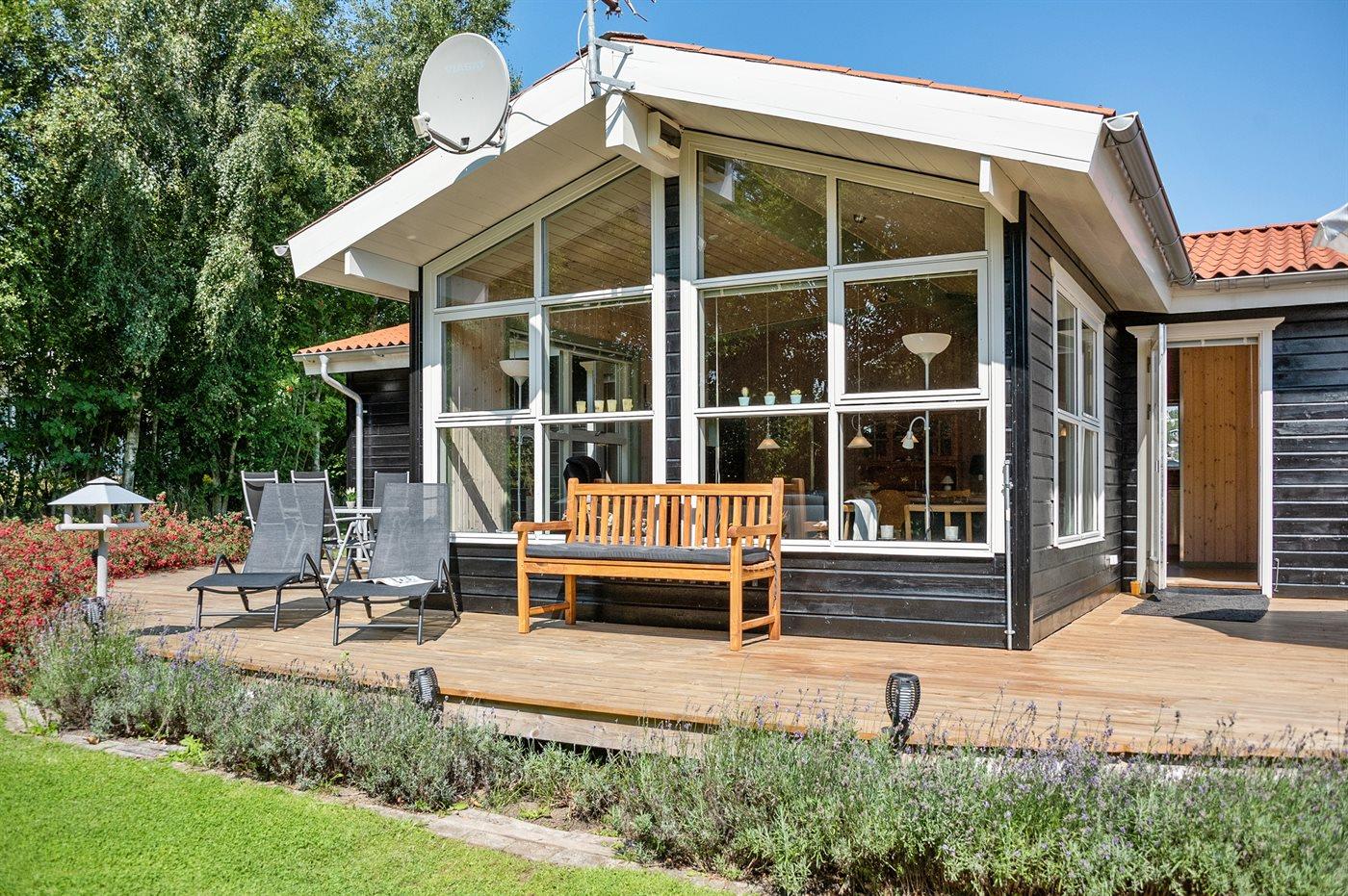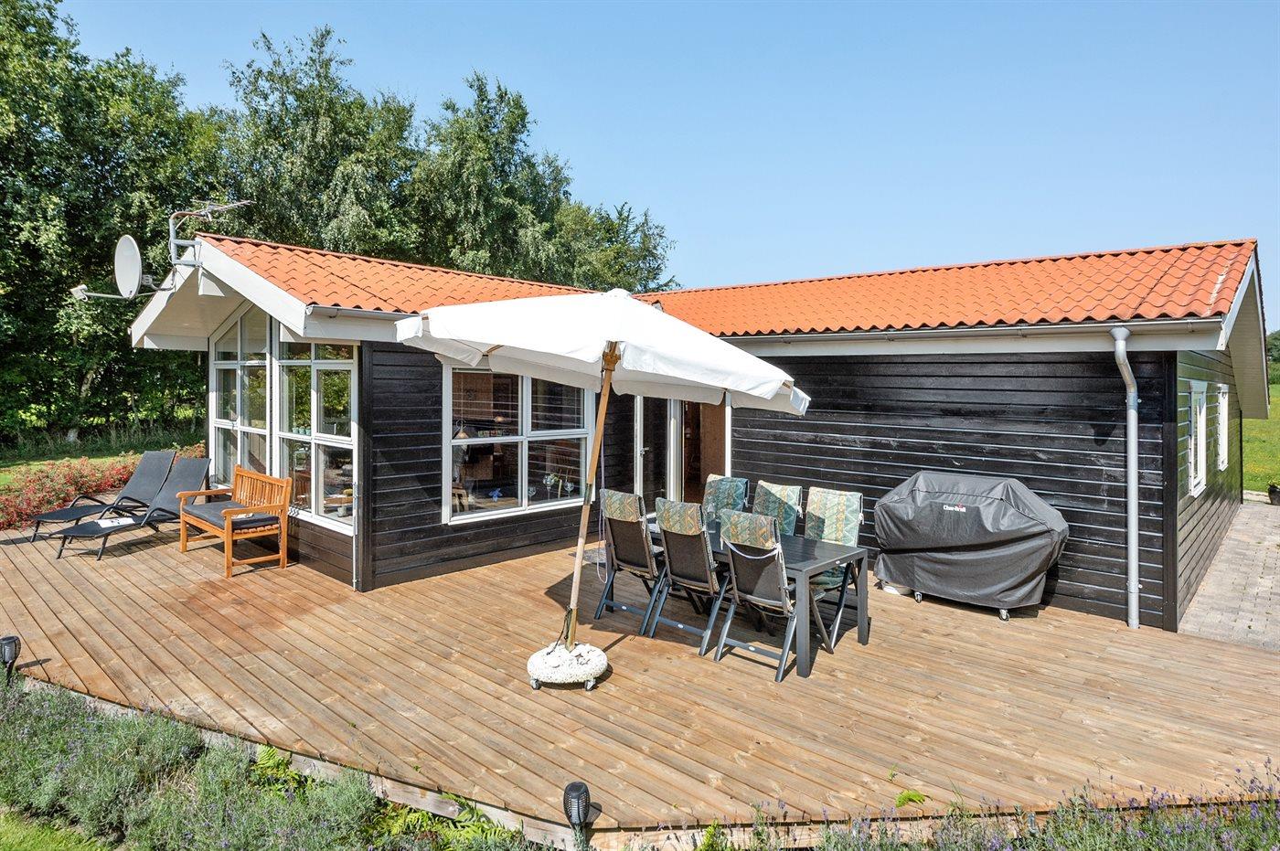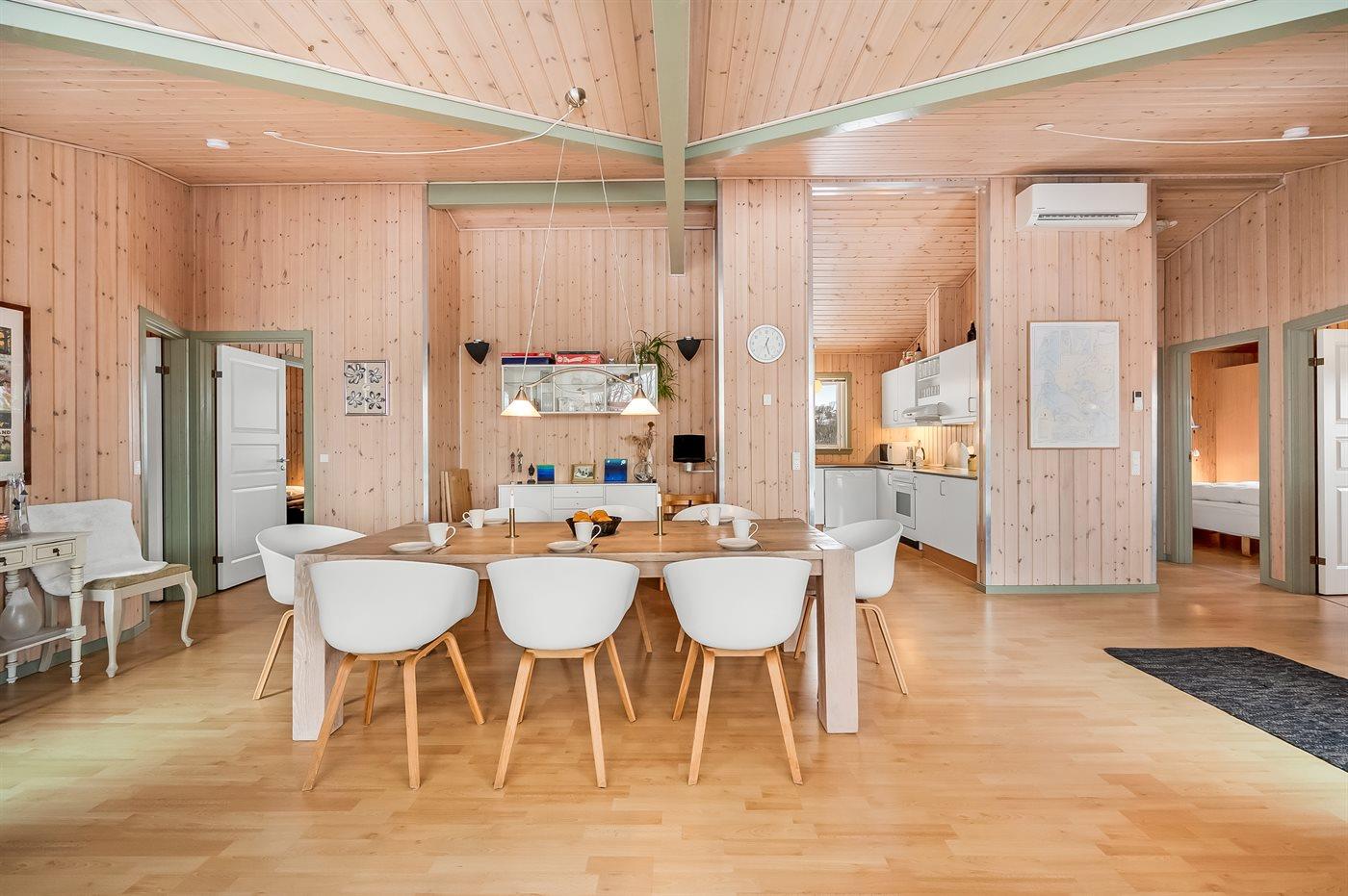 Sommerhuset egner sig til 8 personer. Ferieboligen er på 129 m² og er bygget i 2005. Det er tilladt at medbringe 2 husdyr. Ferieboligen er udstyret med 1 energibesparende luft til luft varmepumpe. Hele ferieboligen har gulvvarme. (Trådløse termostater i hver varmezone). Ferieboligen har vaskemaskine. Tørretumbler. Der findes strygejern og strygebræt samt 2 tørrestativer. Frysekapacitet på 80 liter. Til de små er der 1 stk. barnestol.