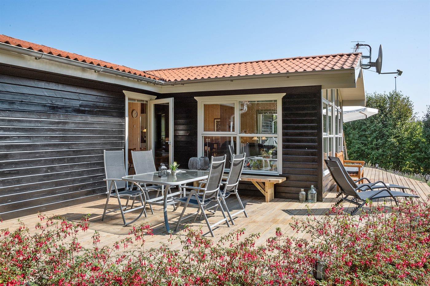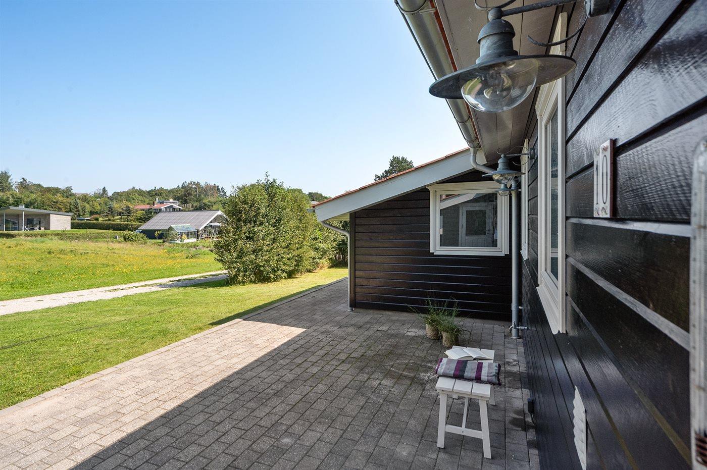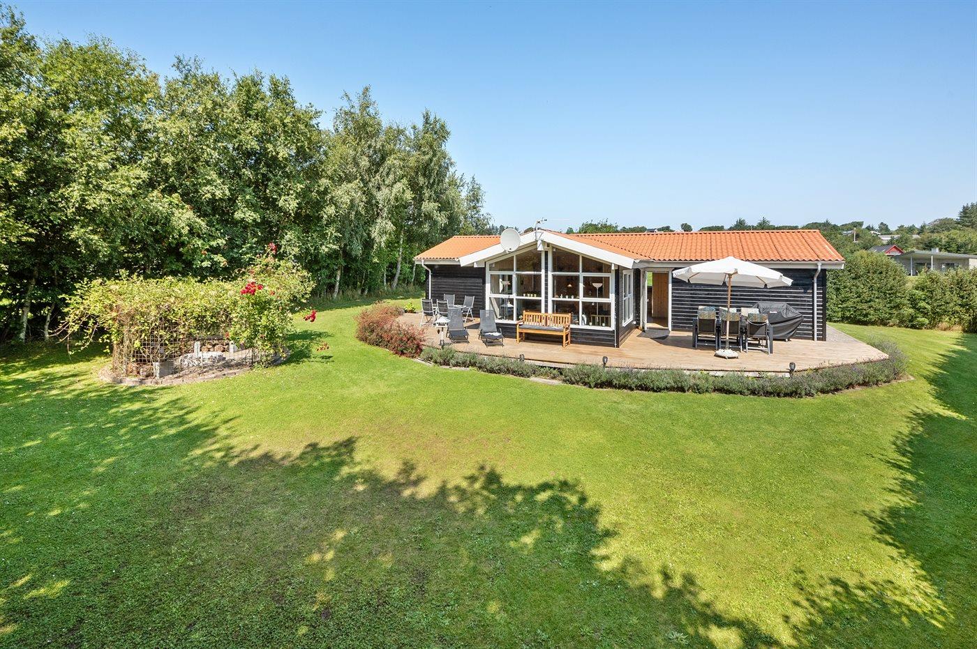 Ferieboligen er beliggende på en 1200 m² stor havegrund. Der er 500 m til fjorden. Nærmeste forretning er beliggende i en afstand af 1000 m. Til ferieboligen hører 80 m² terrasseareal. Bålsted med tilhørende snobrødspinde, bålpande samt rist til popcorn. 2 cykler står til rådighed. Vi garanterer ikke for cyklernes stand, og al service på cyklerne er gæsternes eget ansvar. Der er installeret stik til opladning af elbil. Udendørs spil såsom Kongespil og Padel tennis + net kan benyttes. Desuden 1 drage. Endvidere findes et skab fyldt med både inden- og udendørs legetøj til børn i alle aldre. Bobspil kan benyttes. Parkering ved ferieboligen.