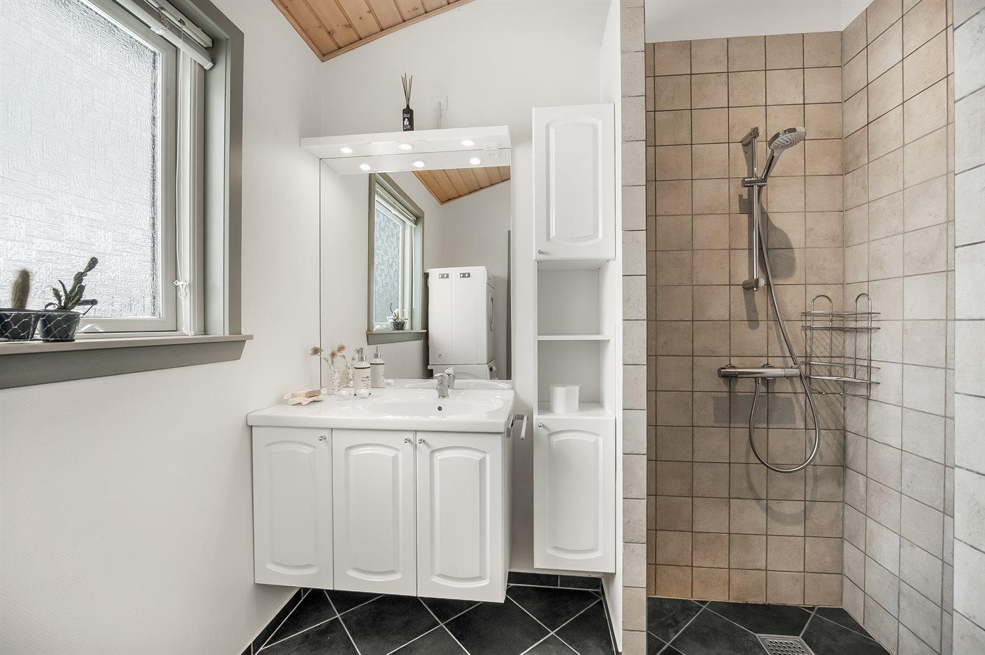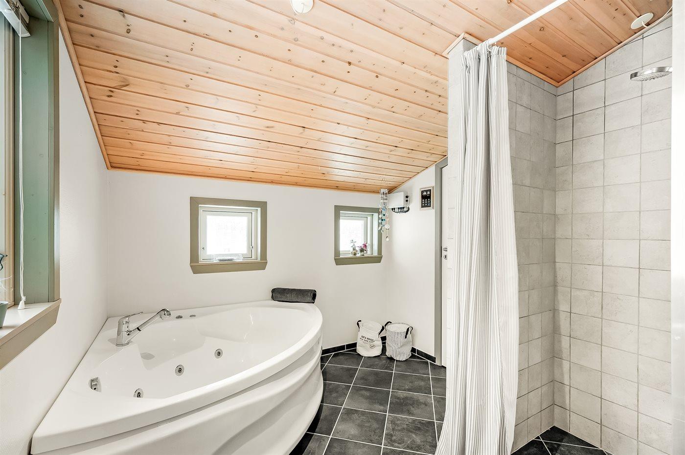 Der er 2 badeværelser med bruseniche og 2 toiletter. Der er gulvvarme på 2 badeværelser.