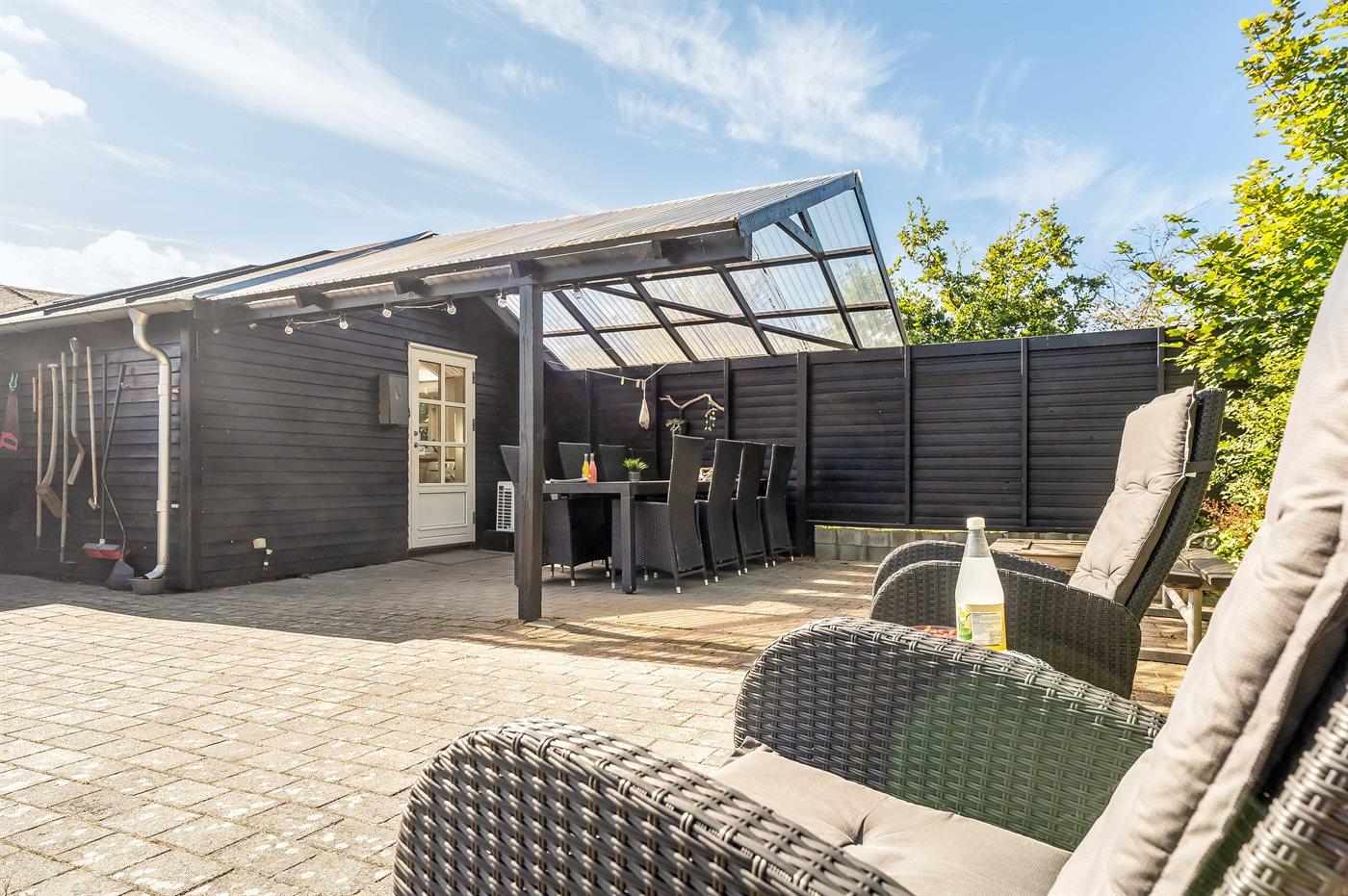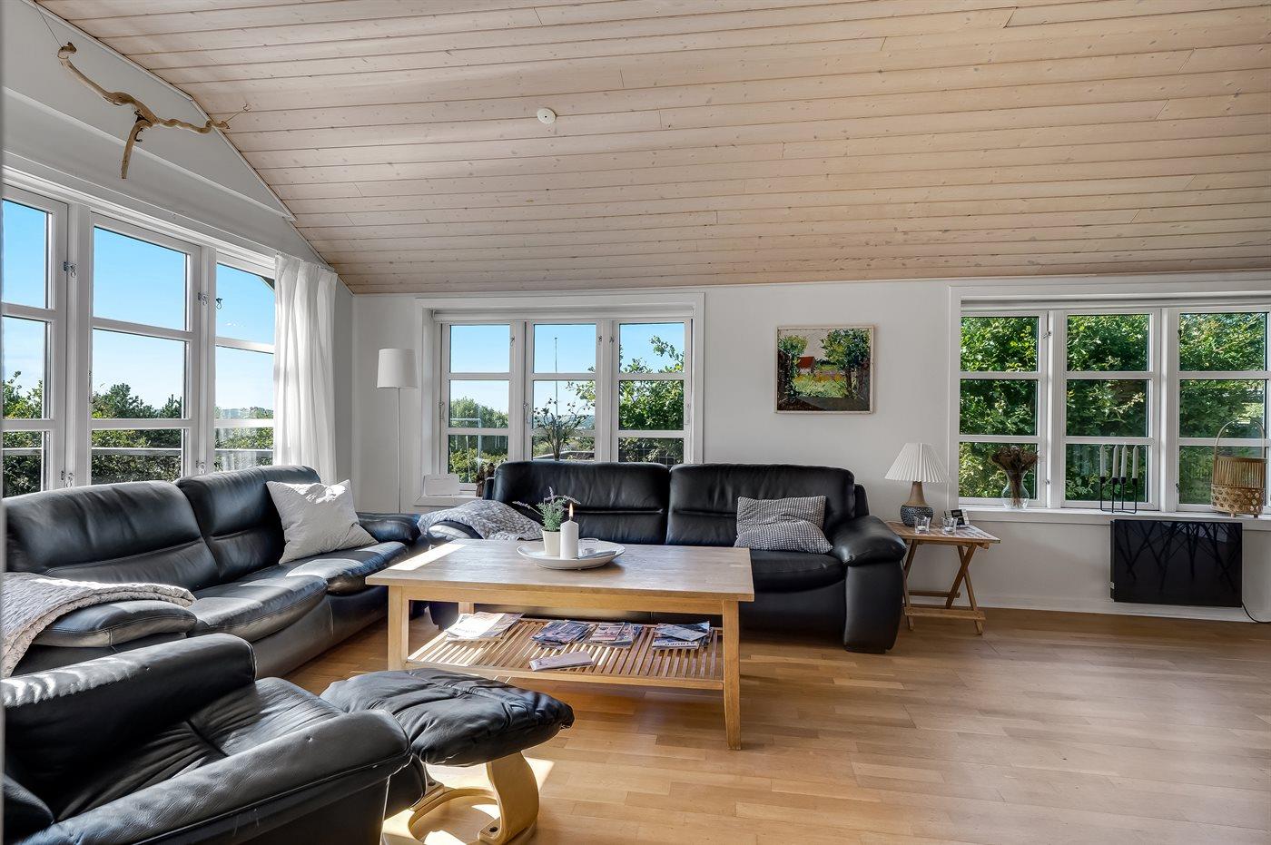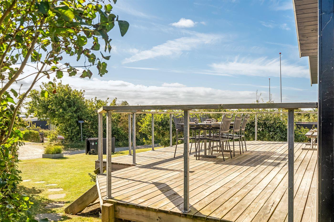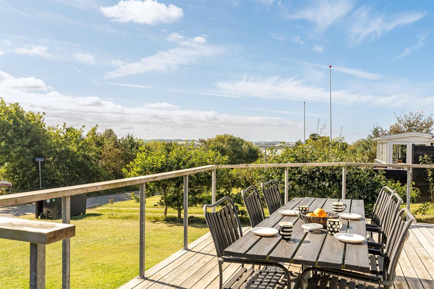 Ferieboligen er beliggende på en 702 m² stor naturgrund. Der er 210 m til fjorden. Nærmeste forretning er beliggende i en afstand af 3000 m. Der er en golfbane i en afstand af 2000 m. Til ferieboligen hører åbent terrasseareal. Desuden er der overdækket terrasse. Sandkasse. Parkering ved ferieboligen.