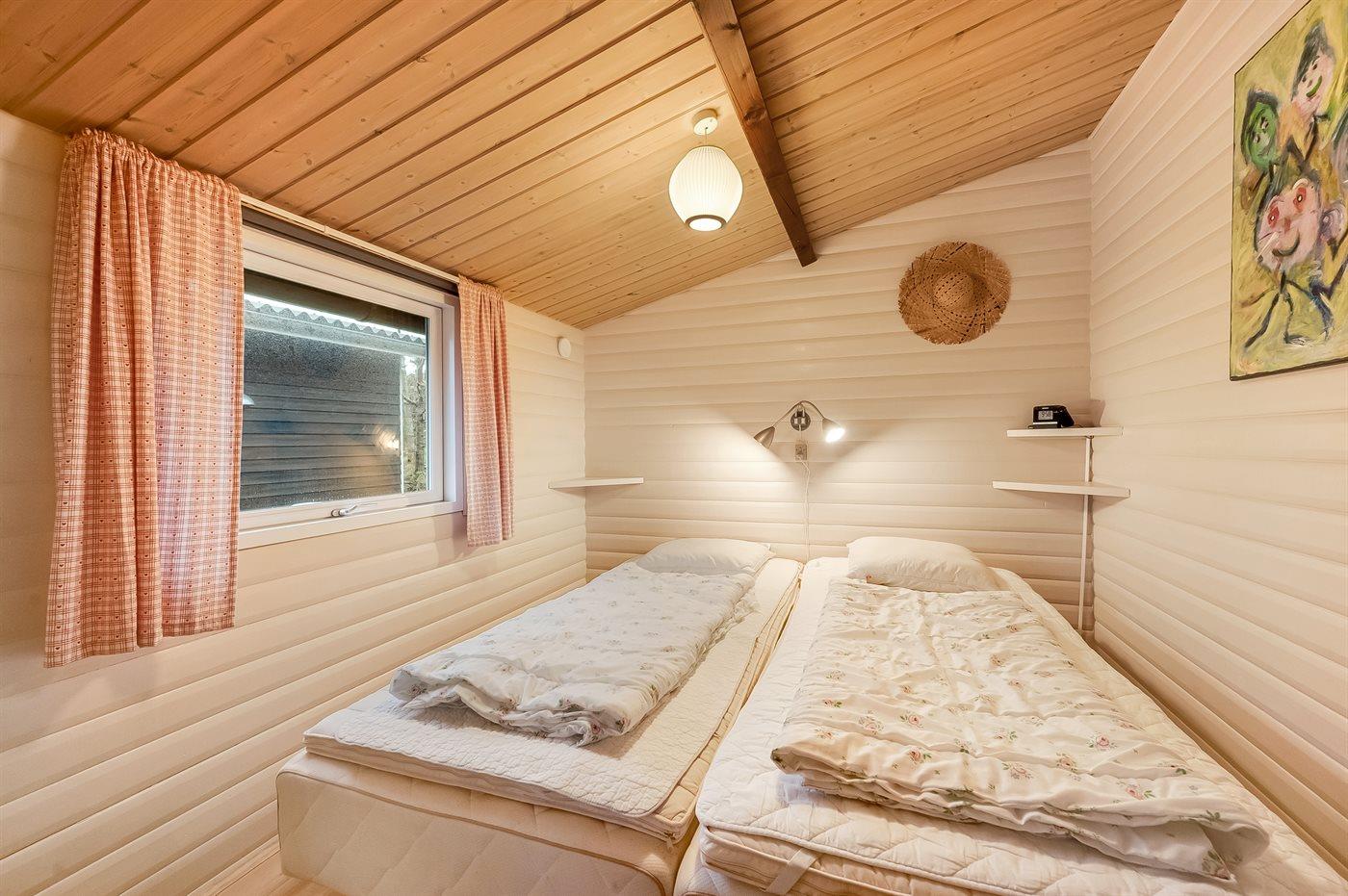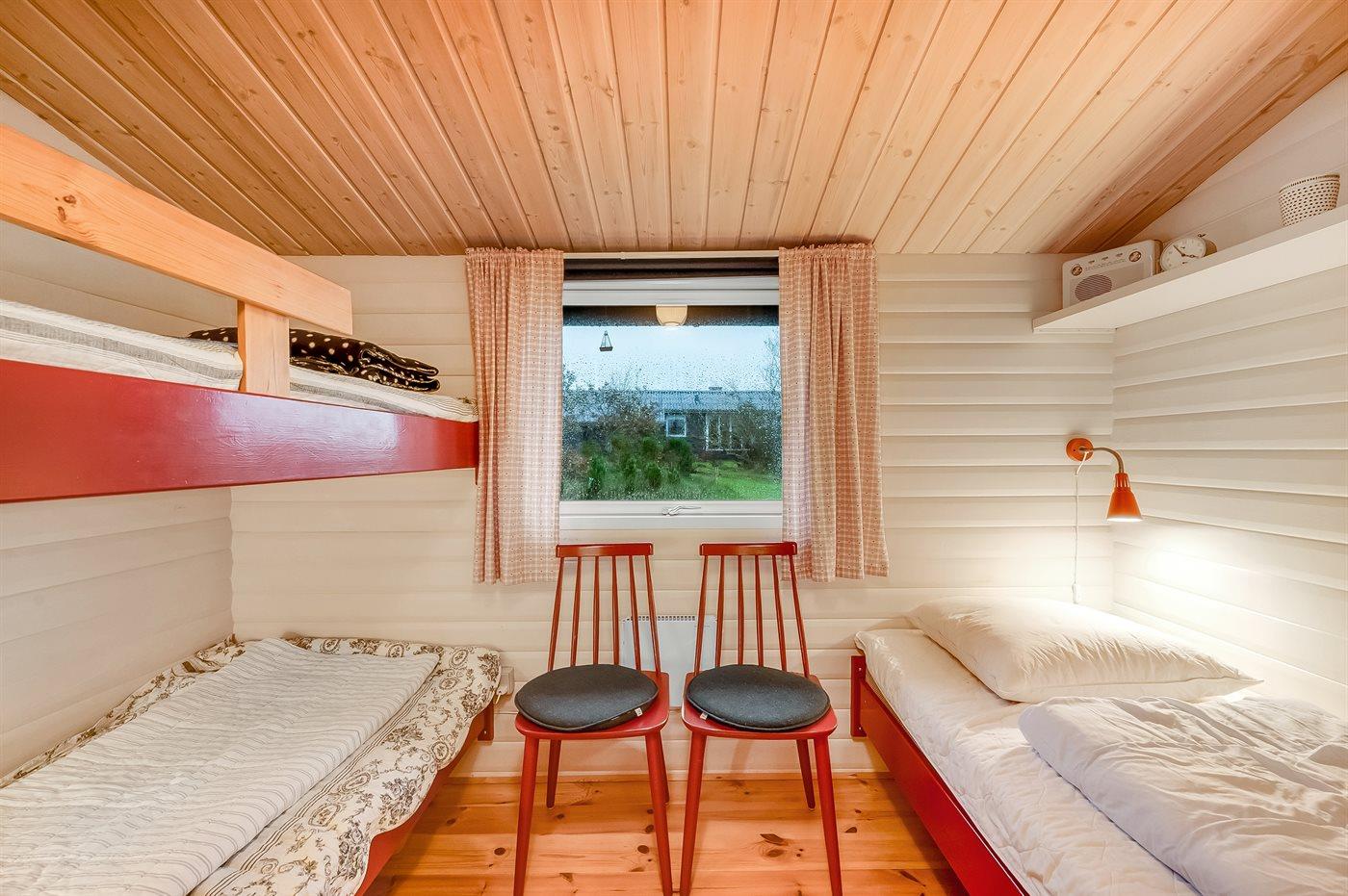 Der er i alt 2 soveværelser. Sovepladserne fordeler sig på: 2 sovepladser i dobbeltseng. 1 soveplads i enkeltseng. 2 sovepladser i køjeseng.