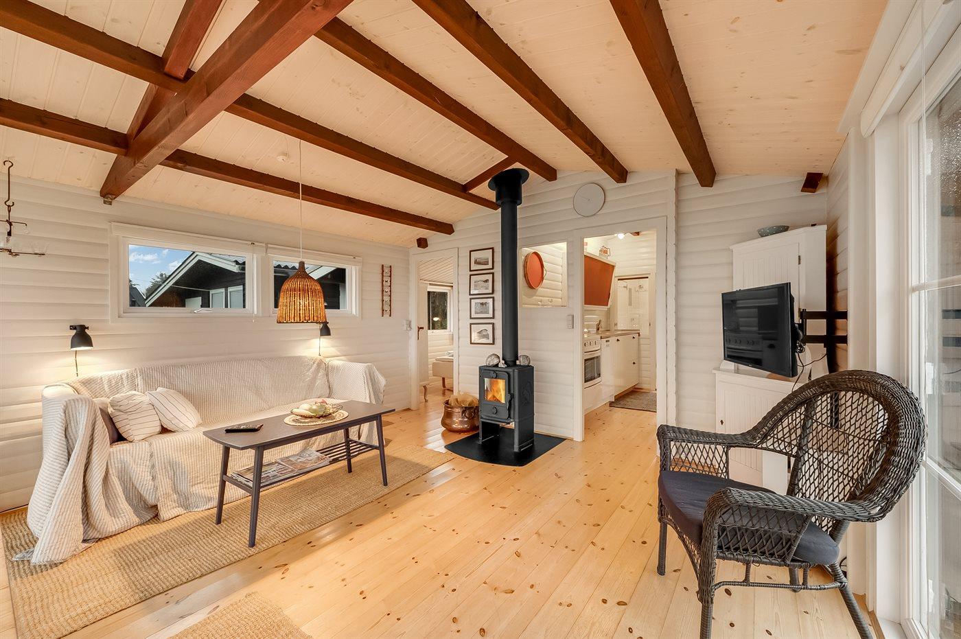 Sommerhuset egner sig til 5 personer. Ferieboligen er på 57 m² og er bygget i 1966. I 2021 gennemgik ferieboligen en delvis renovering. Det er tilladt at medbringe 1 husdyr. Ferieboligen er udstyret med 1 energivenlig luft til luft varmepumpe. Ferieboligen har vaskemaskine. Frysekapacitet på 40 liter. Der er desuden brændeovn.