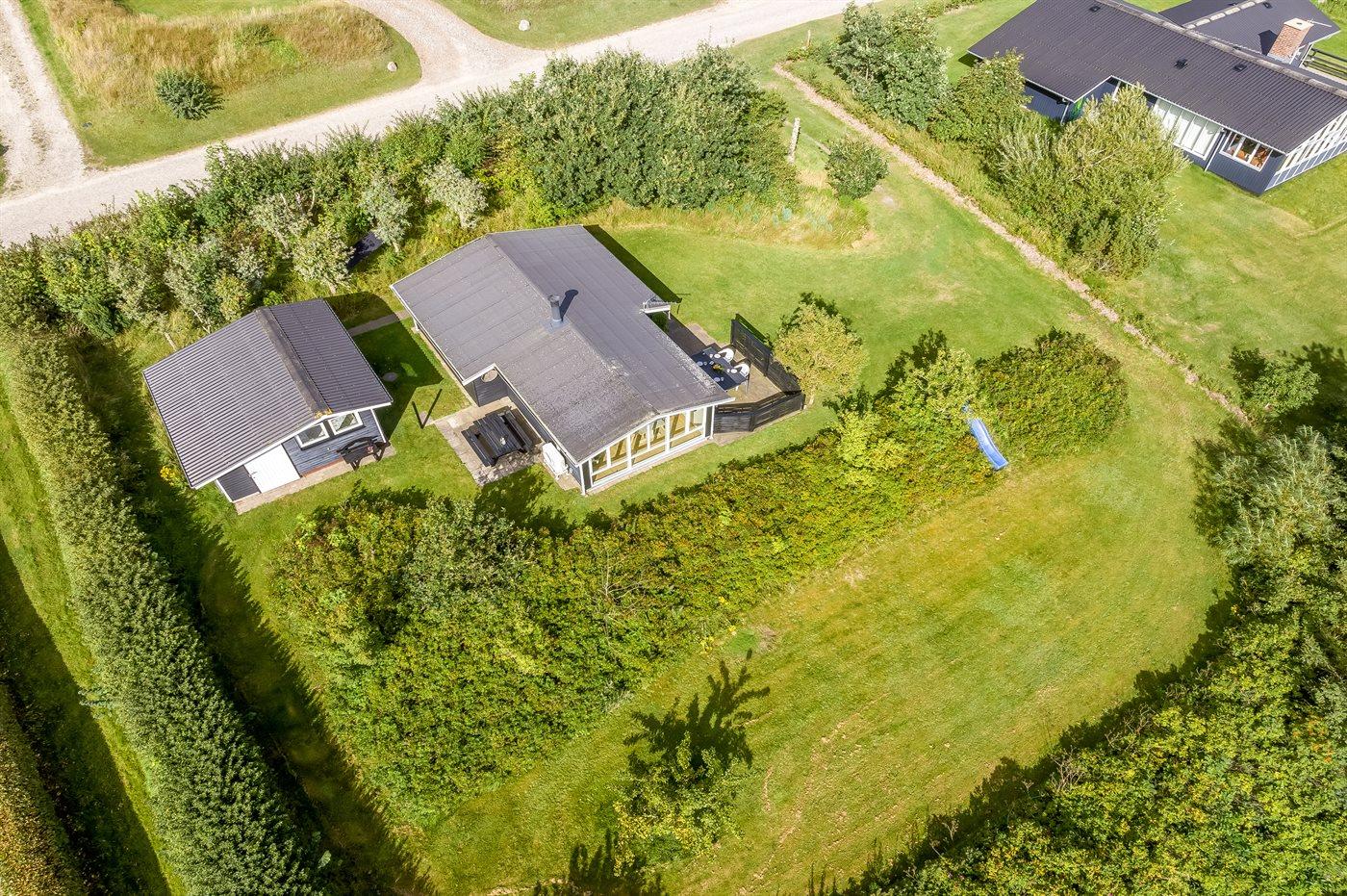 Ferieboligen er beliggende på en 1002 m² stor grund i skov/plantage. Der er 300 m til fjorden. Nærmeste forretning er beliggende i en afstand af 900 m. Der er en golfbane i en afstand af 500 m. Til ferieboligen hører åbent terrasseareal. Parkering ved ferieboligen.
