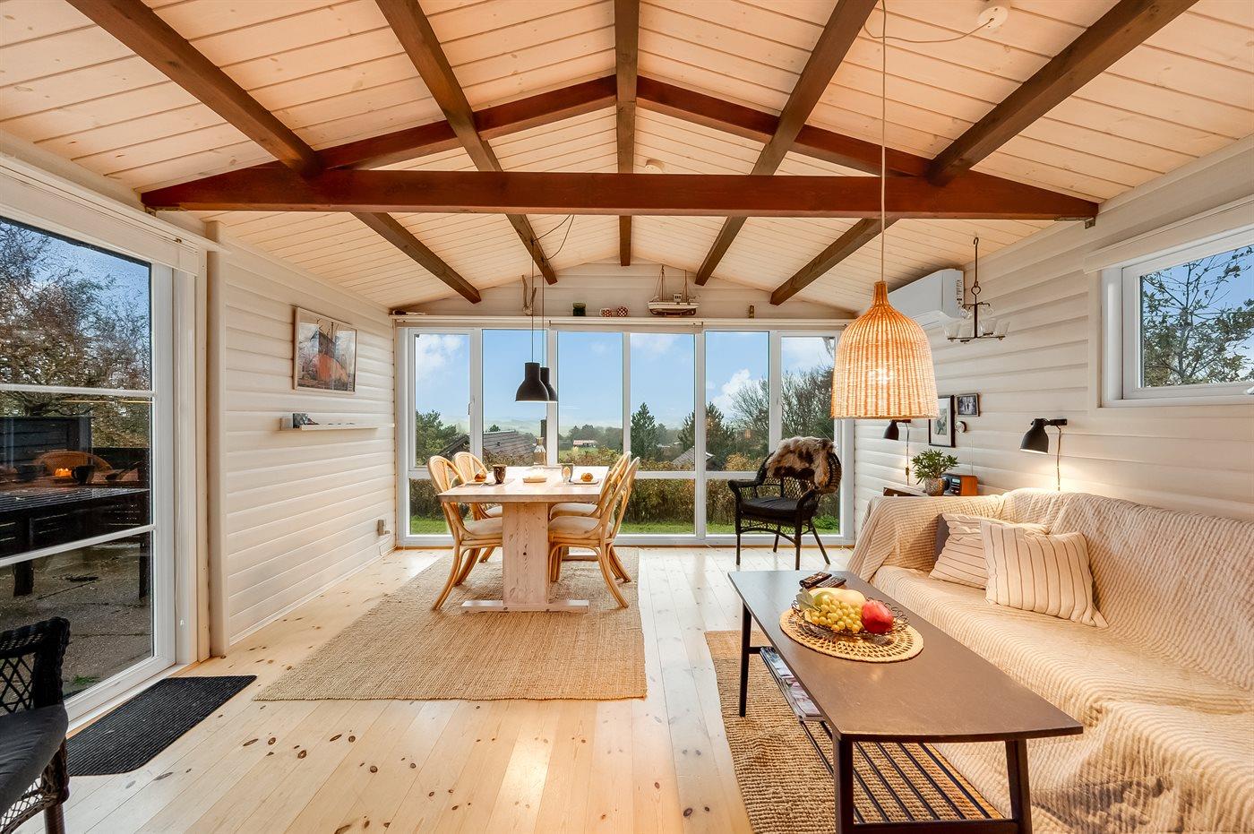 Med en fantastisk udsigt udover bakkerne ved Toftum ligger dette hyggelige sommerhus. Husets indretning byder på masser af hygge og inviterer til mange hyggelige timer sammen med familien.