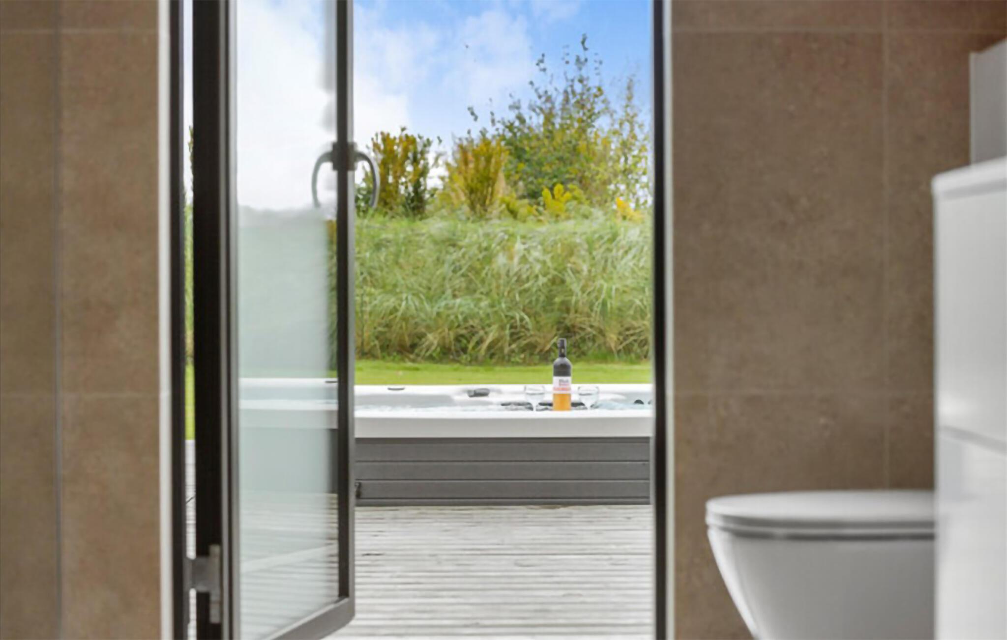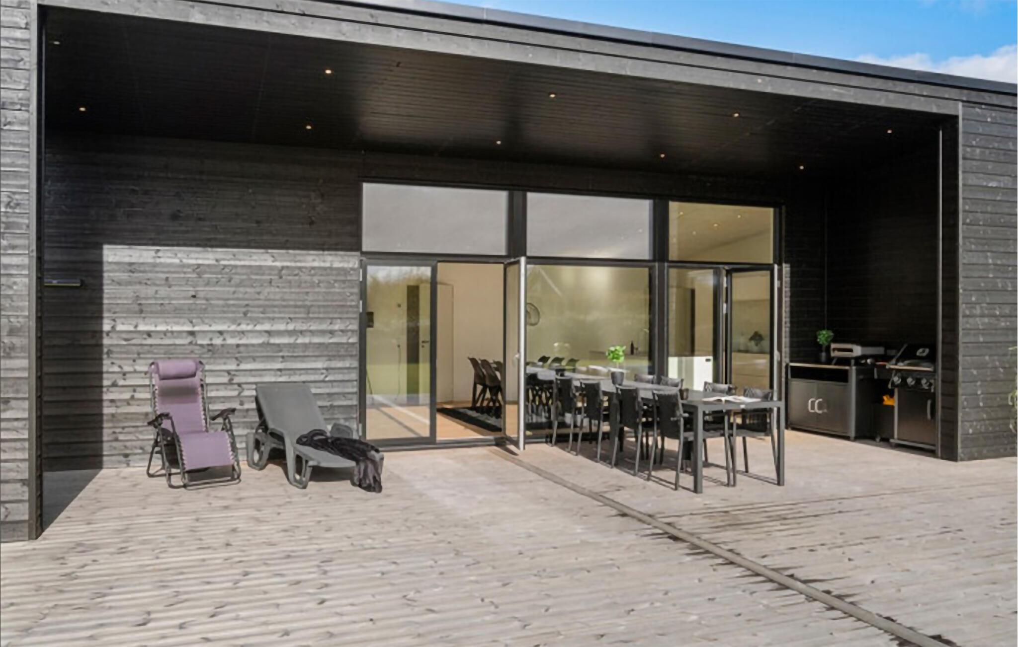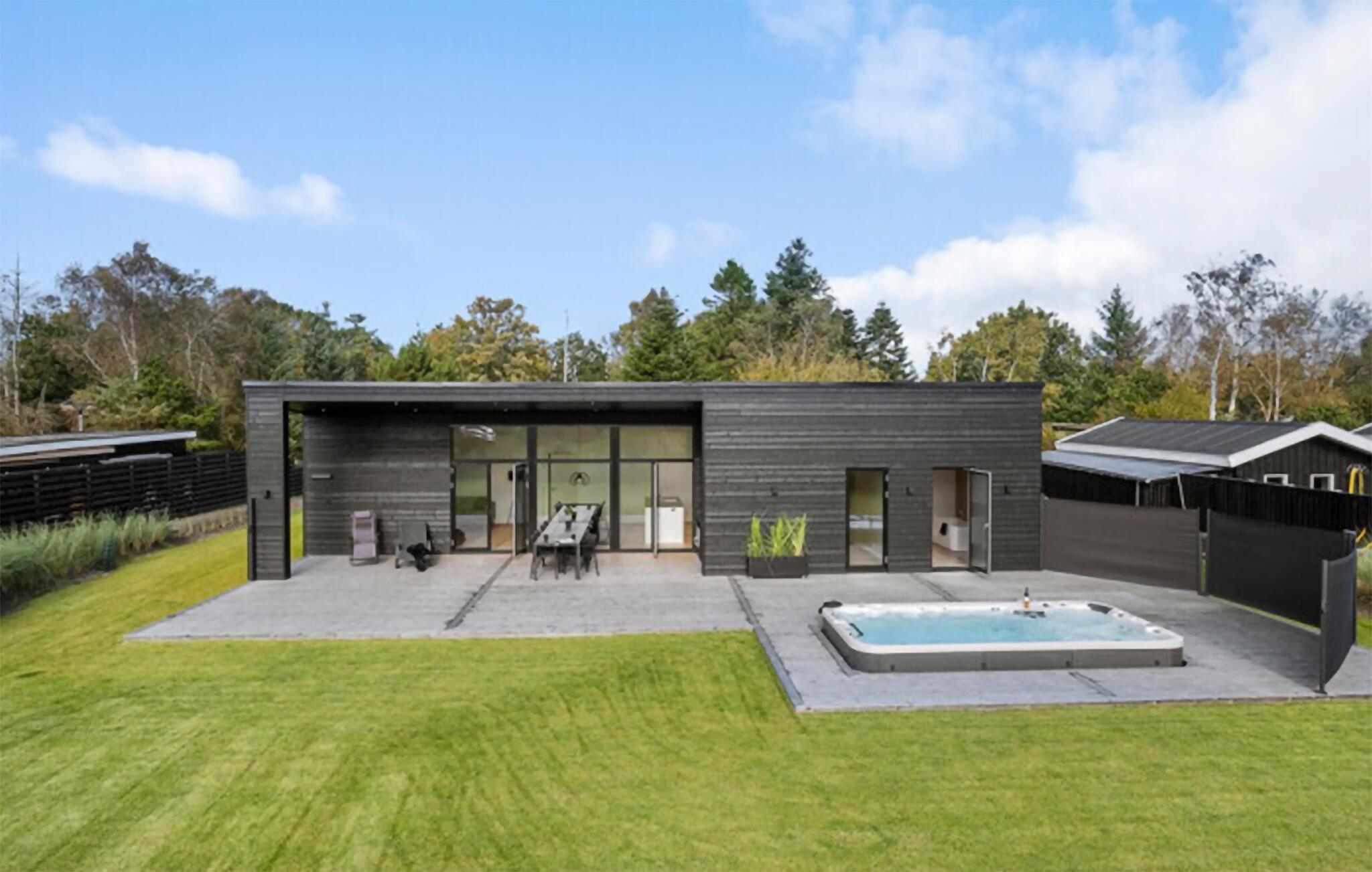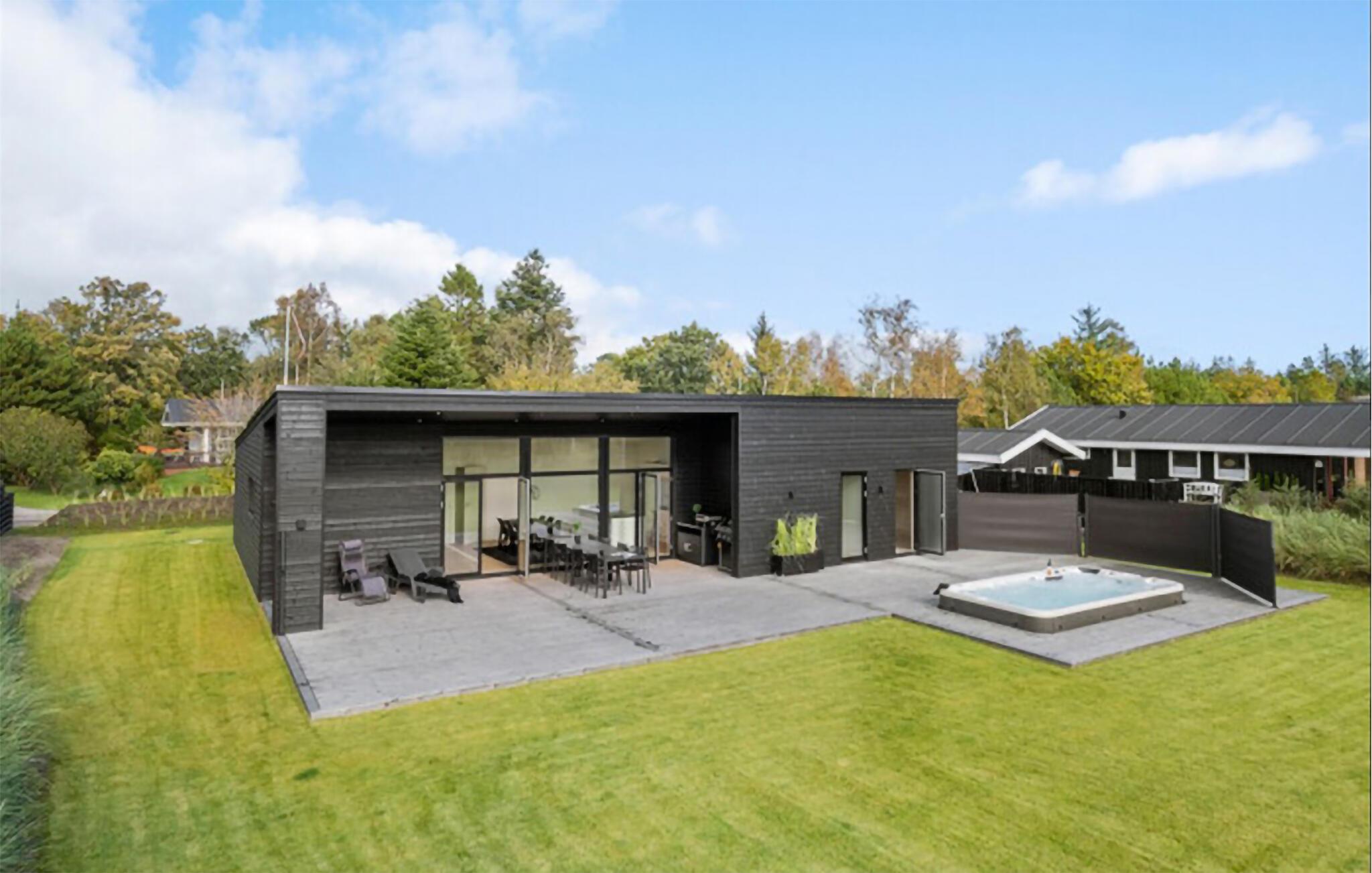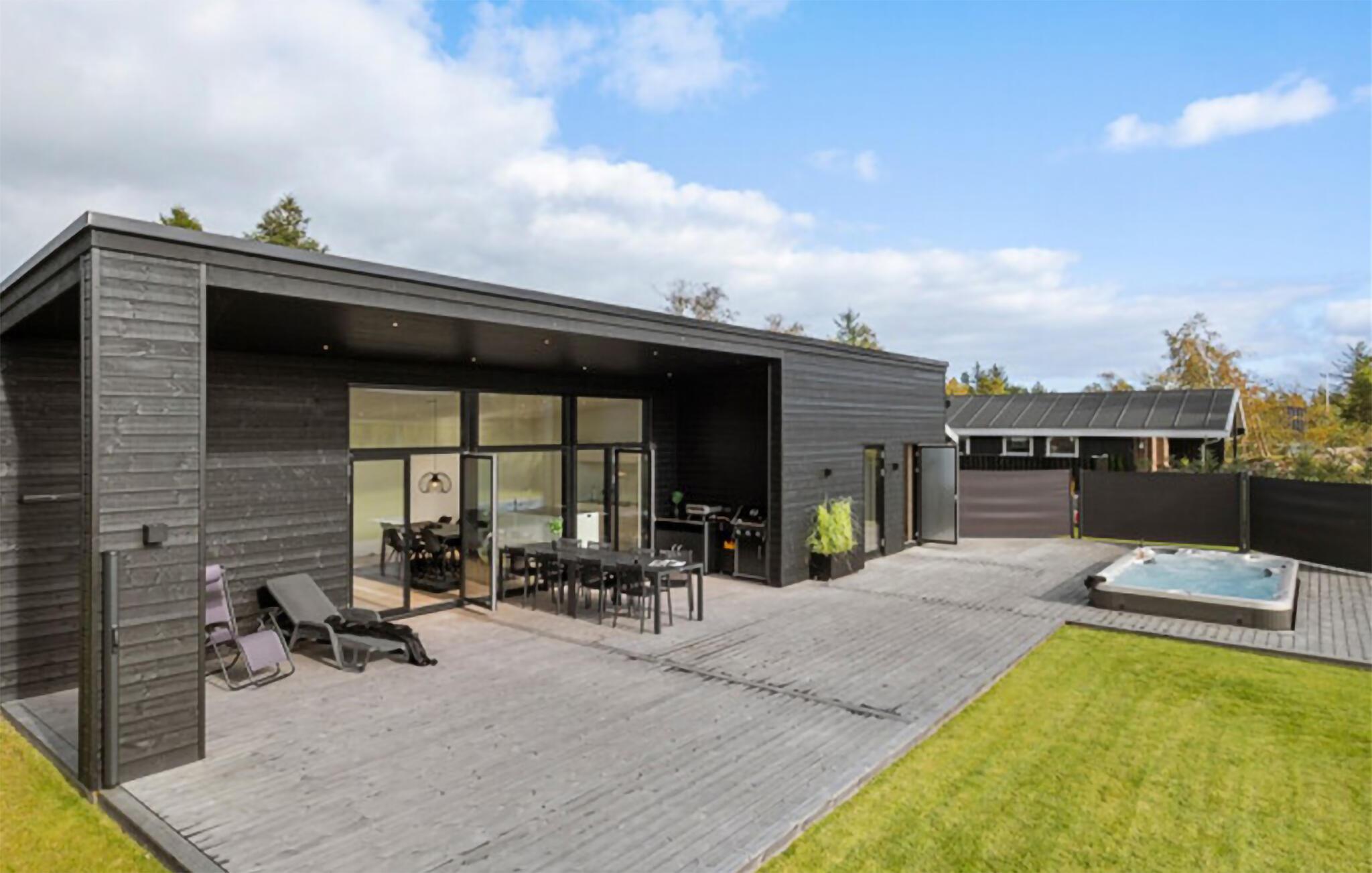 Glæd jer til et skønt ophold i dette moderne feriehus med udendørs wellness på den store terrasse.