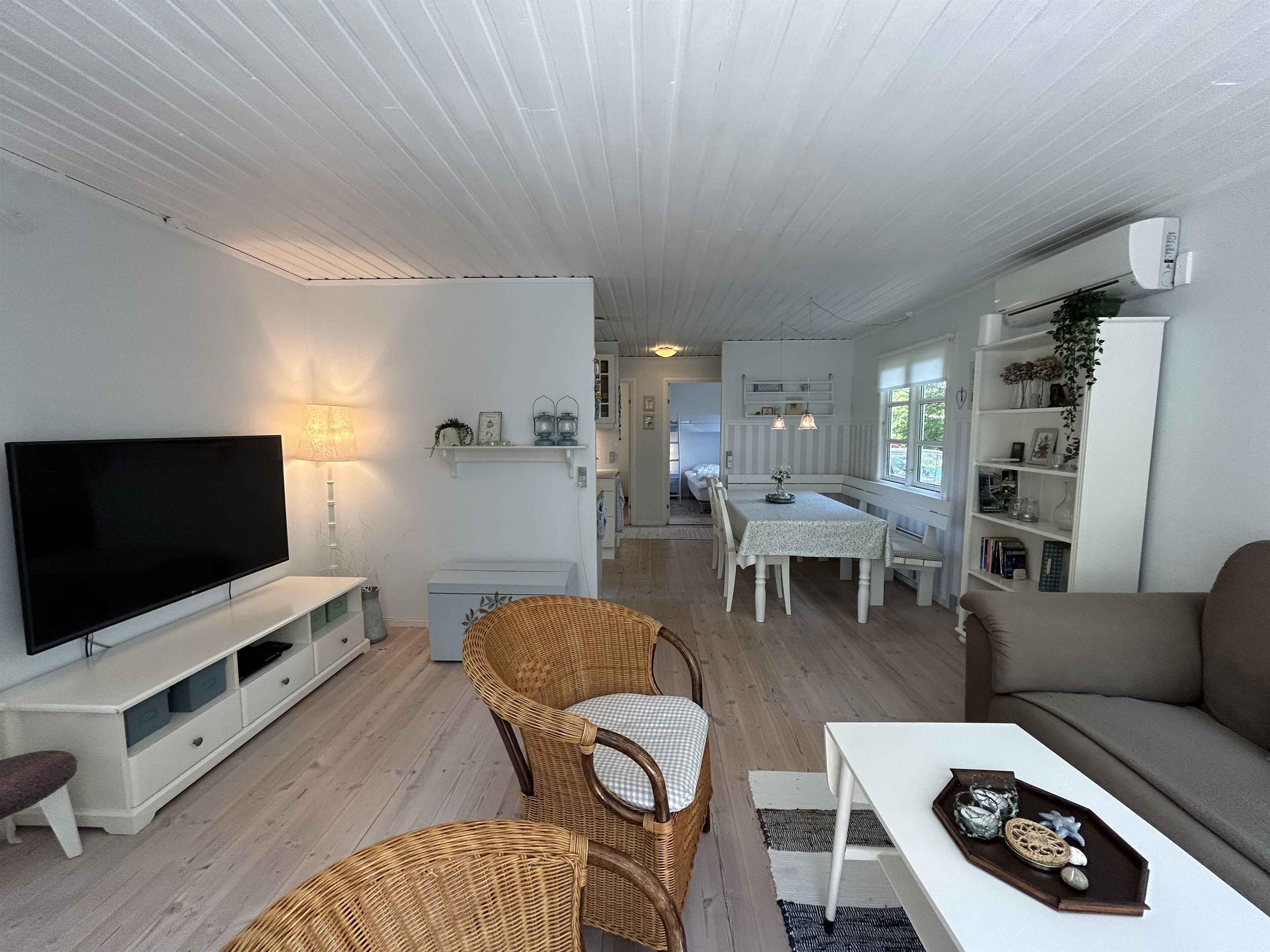 Hyggeligt lille idyllisk sommerhus på 65 m2, som løbende er blevet renoveret, beliggende på 1400 m2 stor dejlig ugenert grund med gammel randbeplantning, græsplæne rundt hele huset, flere lækroge, bålplads, 2 træterrasser, hvoraf den ene er overdækket og ca. 375 meter fra stranden i det naturskønne sommerhusområde ved Stoense Havn på Nordlangeland. Her er god plads til en afslappende ferie tæt på vand og natur. Huset har to soveværelser med fire sovepladser - velegnet til både familier og par. Opholdsrummet er åbent og praktisk indrettet med brændeovn og varmepumpe, så her er komfort hele året. Internettet giver mulighed for streaming eller arbejde, hvis det skulle blive nødvendigt. Her er det nemt at finde ro. Haven er lukket og rummelig med plads til leg, afslapning og udendørsliv. Der er et bålsted, som skaber hyggelige aftener med ild og fællesskab. En god ramme for udeliv både sommer og efterår. Stranden ligger kun få minutters gang væk. Vandet er lavt og indbydende, og stranden er perfekt til både badning, gåture og aktiviteter i vandkanten. Her kan børn lege frit, og voksne nyde naturens stilhed. Området omkring huset byder på åbne vidder, små stier og god plads. Det er oplagt til vandreture og cykling langs kyst og mark, eller til ture rundt på Langeland, hvor landskabet skifter mellem skov, strand og bakker. Nærområdet byder på lokale gårdbutikker, små spisesteder og oplevelser som Tranekær Slot og Langelands kunsthåndværkere. Der er også gode muligheder for at fiske, sejle i kajak eller besøge hyggelige havnemiljøer. Dette sommerhus er et godt valg for dig, der ønsker fredelige omgivelser tæt på natur og strand – og mulighed for at kombinere ferie med nærvær, udendørsliv og ro i eget tempo.