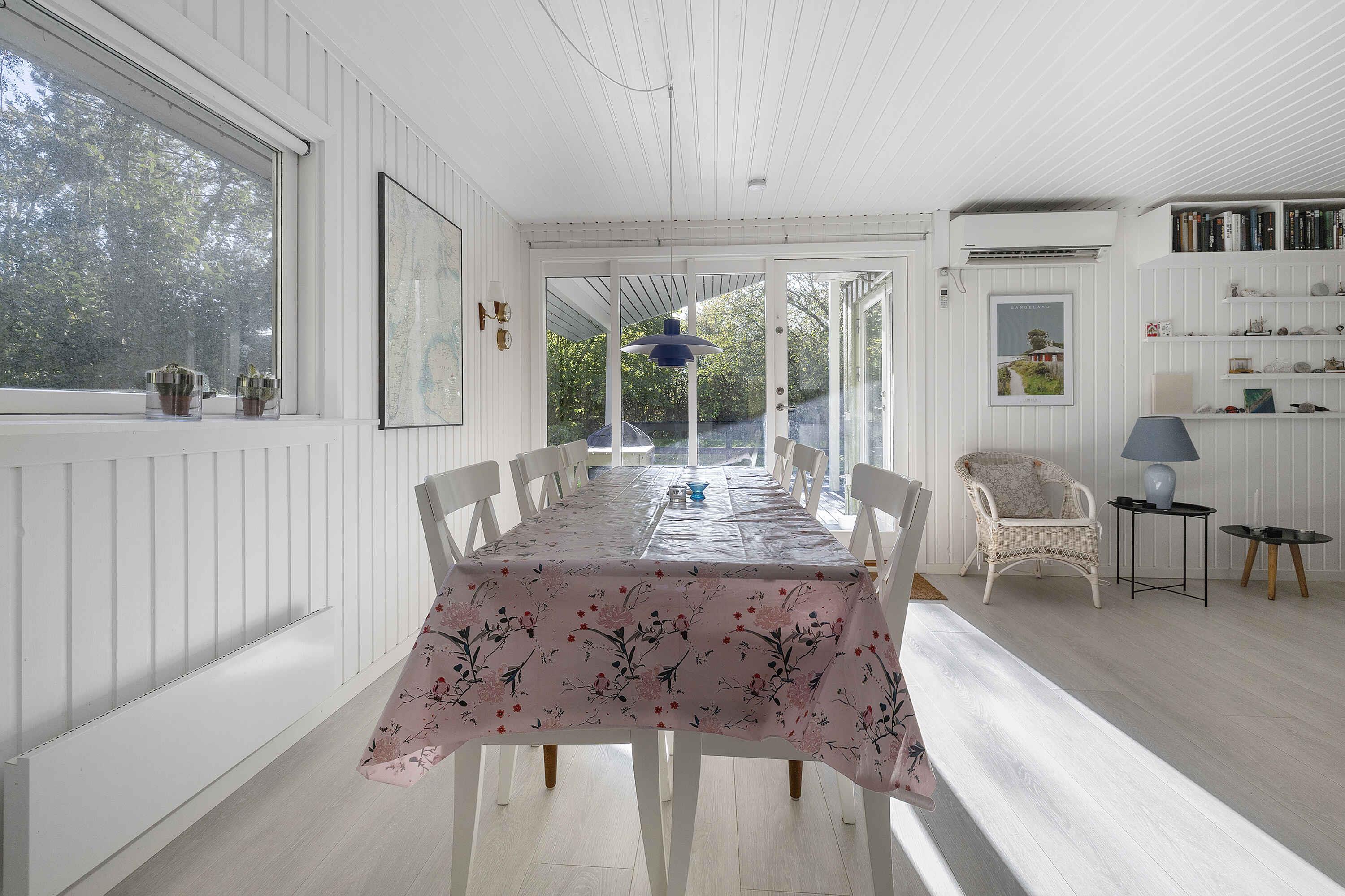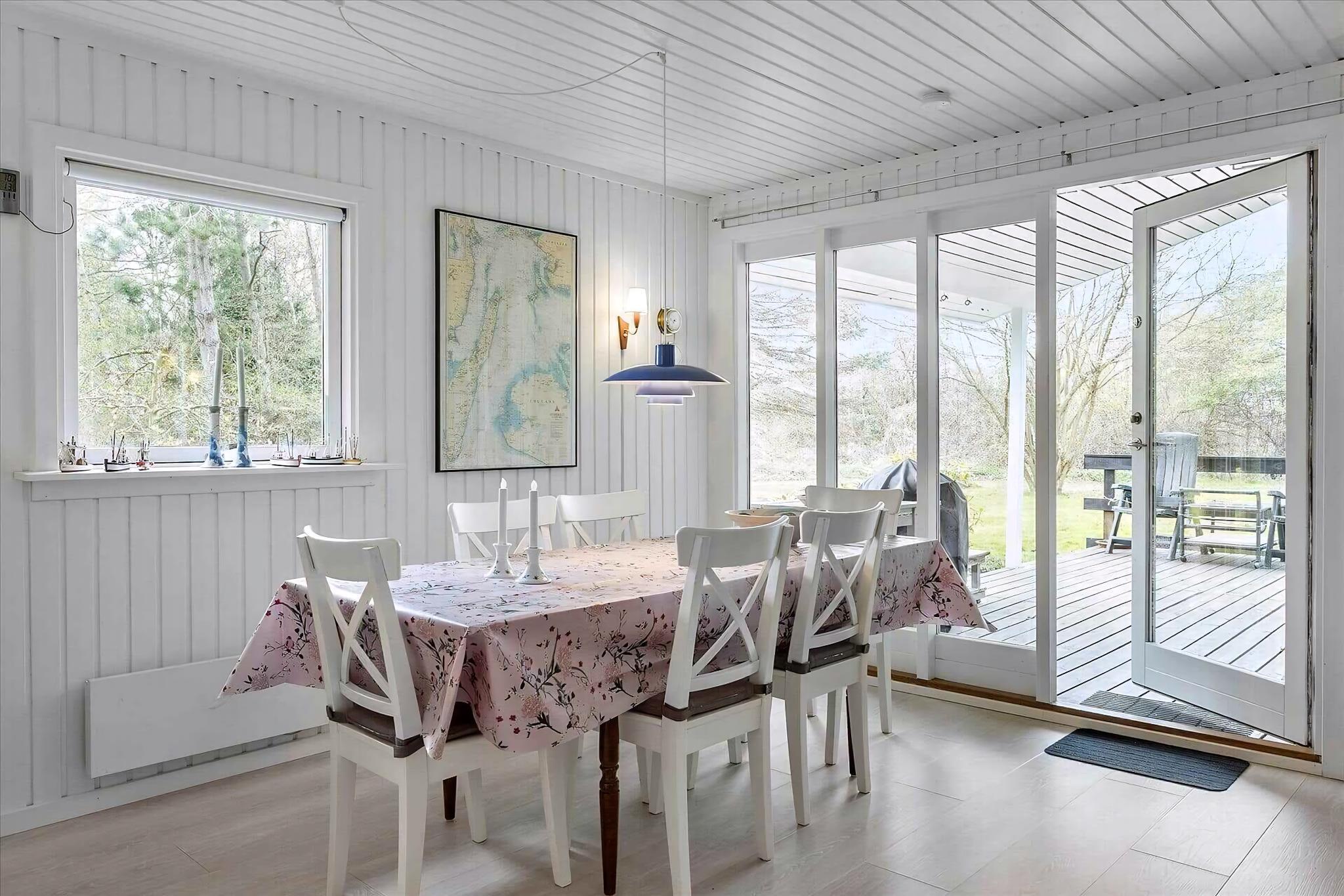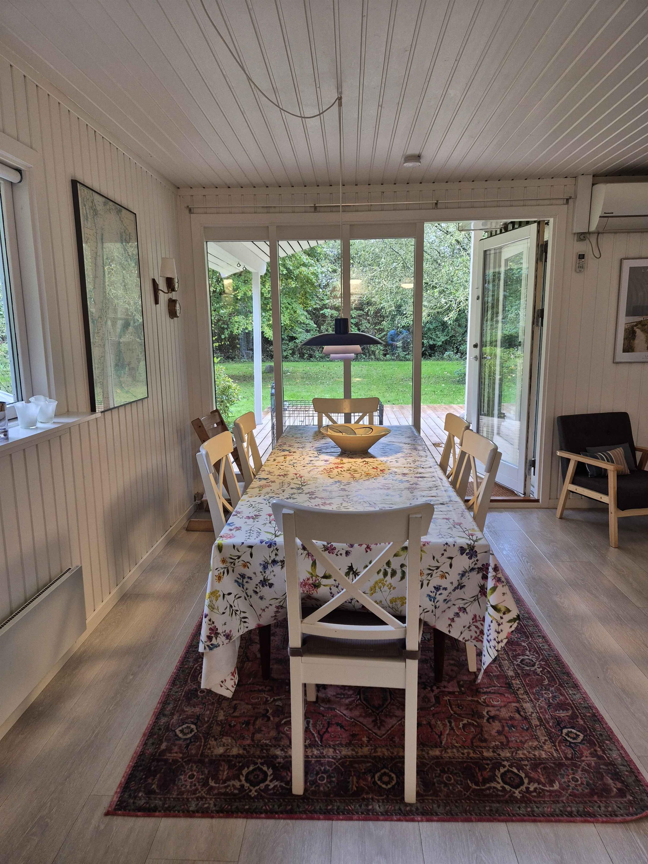 Dette charmerende feriehus på det nordlige Langeland byder på ægte sommerhusstemning i en naturskøn indstilling. Indvendigt er huset malet i lyse farver, der skaber en luftig og indbydende atmosfære. Du vil straks føle dig hjemme i dette hyggelige hus, der er placeret i rolige omgivelser ved enden af en lille stikvej på det nordligste Langeland, og kun en kort, 2-minutters gåtur fra havet. Den nærliggende fælles badebro giver dig nem adgang til havet, og det er det perfekte sted at nyde solopgangen eller tage en forfriskende dukkert. Hvis du er en ivrig fisker, vil du elske de mange muligheder, dette område tilbyder. Indretningen af huset omfatter en entré, et badeværelse med bruser, et soveværelse med dobbeltseng og et værelse med køjeseng. Den rummelige køkken/alrum kombinerer køkken, spiseområde og opholdsområde i en harmonisk atmosfære. Herfra åbner døren sig ud til den overdækkede terrasse, der giver dig mulighed for at nyde udendørs livet uanset vejrforholdene. Der er også et anneks ved terrassen med køjeseng. Uanset om du er til afslapning, naturvandringer, fiskeri eller bare ønsker at komme væk fra hverdagens travlhed, er dette feriehus det ideelle sted at opleve alt dette og mere. Tag på udforskningsture i området, besøg lokale seværdigheder eller bare slap af og nyd den naturskønne atmosfære, der omgiver dette skønne sommerhus. Det er tilladt at medbringe to hunde, men andre husdyr er ikke tilladt grundet allergi. Obs, udlejes ikke til erhversmæssigt brug.