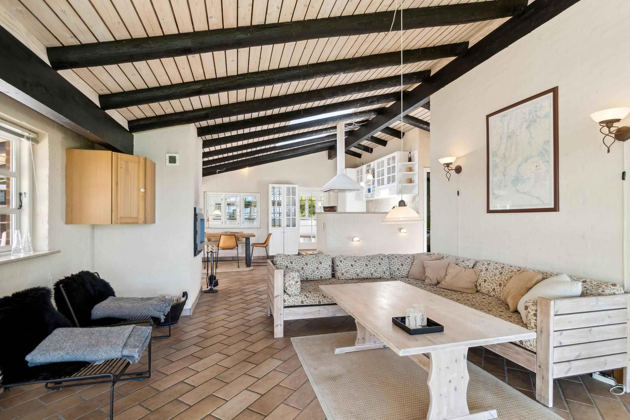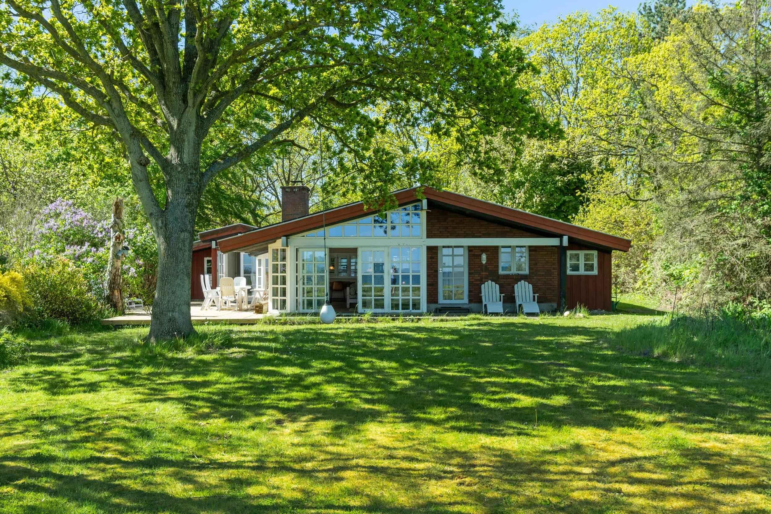 Hyggeligt sommerhus på Langeland med panoramaudsigt over Storebælt, direkte adgang til vandet og flere terrasser til afslapning.