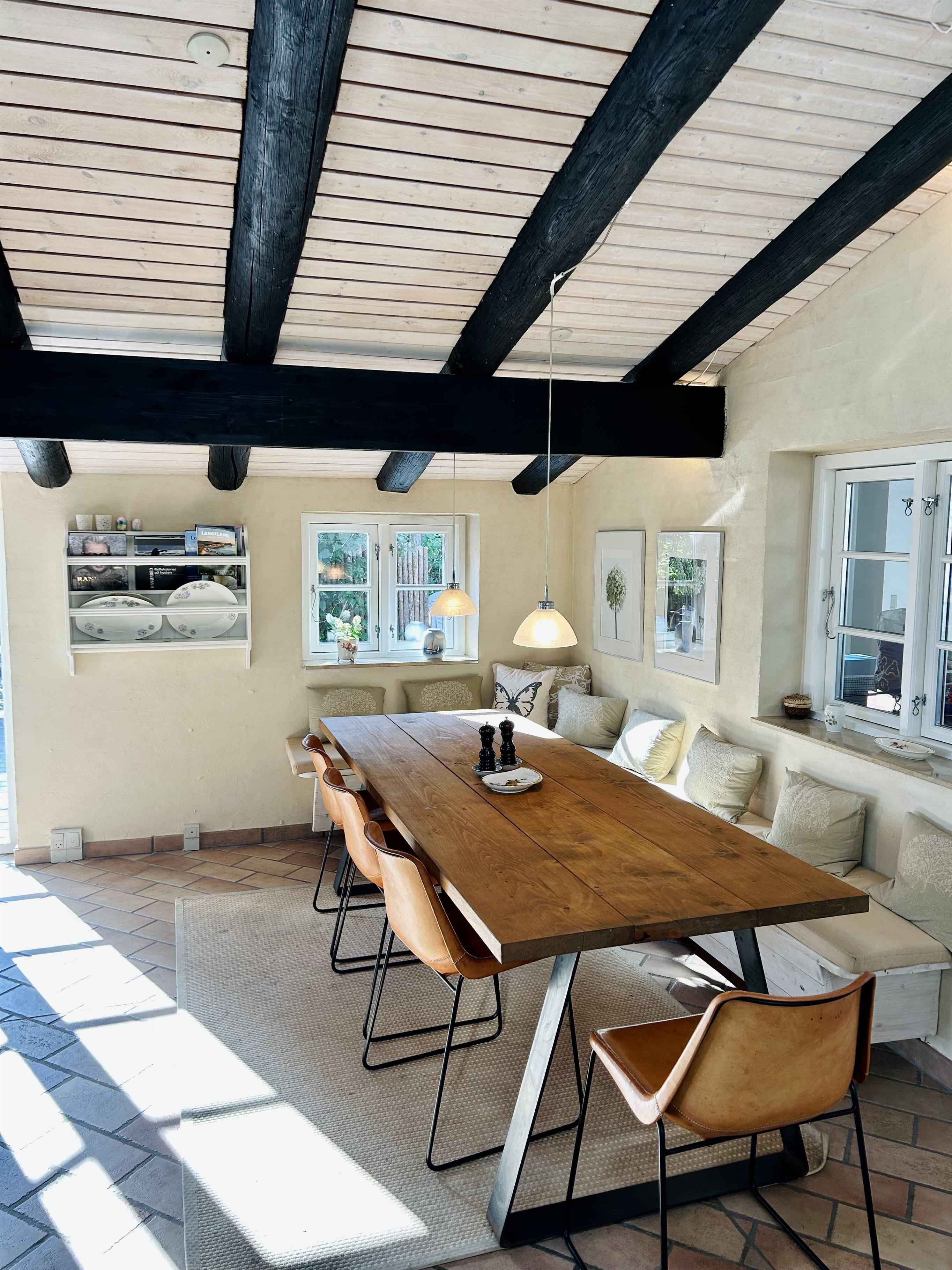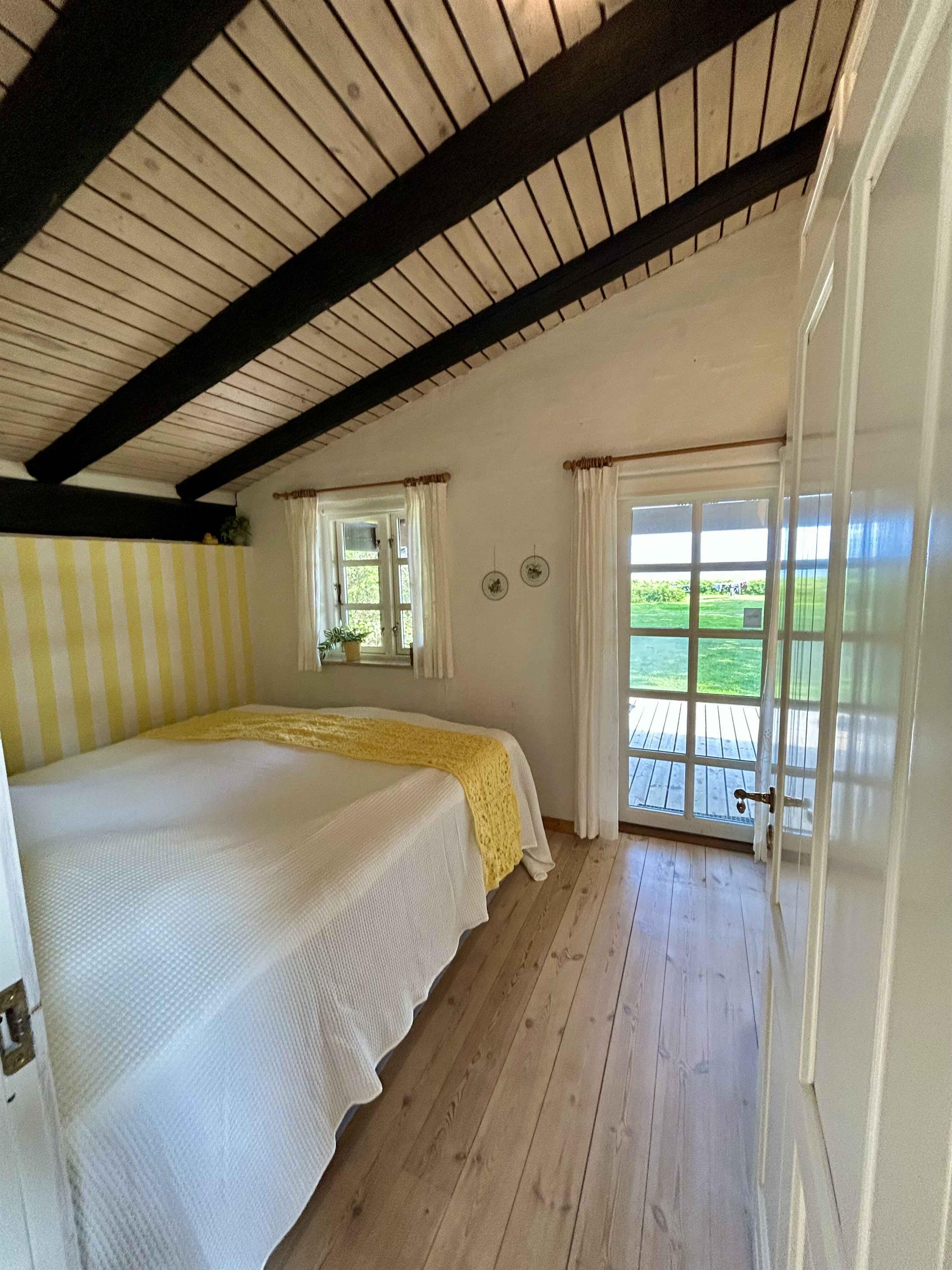 Velkommen til vores sommerhus på toppen af Langeland – et helt særligt sted, hvor roen, naturen og havudsigten smelter sammen i én uforglemmelig oplevelse. Huset ligger i første række til Storebælt, med en panoramaudsigt, der aldrig bliver kedelig – uanset om solen står op over vandet, eller vinden rusker i træerne. Her falder skuldrene automatisk ned, og tiden går lidt langsommere. Fra terrassen kan du følge skibene, der glider forbi i horisonten, eller bare sidde med en kop kaffe og nyde lyden af bølgerne, der slår mod stranden. Du er måske endda heldig at nyde synet af de søde marsvin, der ofte jager lige foran huset. Haven fører dig direkte ned til vandet, hvor du kan bade, fiske, kaste smut eller bare dyppe tæerne i det klare hav. Bagefter kan du bade i vores hyggelige udendørsbruser, som selvfølgelig har dejligt varmt vand året rundt. Huset har flere terrasser, så uanset om du jager solens stråler eller kølig skygge, er der altid et sted at slappe af. Du finder både møbler velegnet til at spise ved, nogle hvor I kan slappe af med en kop kaffe og nogle, hvor I kan lægge jer på langs og nyde udsigten – og til børnene er der legesager til haven og et par solide fodboldmål. Får de græs på bukseknæene, så er der både vaskemaskine og tørretumbler i bryggerset. Sommerhuset er hyggeligt og personligt indrettet – med kærlighed til stedet og naturen omkring det. Det er vores fristed, og vi håber, du vil føle dig lige så hjemme her, som vi gør. Her er plads til både ro og nærvær – og de små øjeblikke, der gør en ferie uforglemmelig. Indenfor er huset rummeligt med i alt 137kvm. Du finder i alt 4 soveværelser indrettet i hver sin personlige og hyggelige stil. Alle værelserne har dobbeltsenge, og i det ene findes også en køjeseng. Derudover findes en babyseng, du altid kan sætte op i det værelse, du ønsker det. Huset har desuden to badeværelser – ét i hver ende og tæt på værelserne. Dertil er der et rum med bordtennisbord og så selvfølgelig den store kombinerede stue og køkken, hvor vi altid tilbringer det meste af vores ”inde-tid” med spil, tegning og hygge. Du kan gøre det samme, for på hylder, i skuffer og skabe finder du et udvalg at familievenlige spil og tegneredskaber. Køkkenet er veludstyret, så holder du af god mad, skal du ikke gå på kompromis! Vi forsøger også at fylde op med basiskrydderier, bagepapir osv., når vi selv er i huset, og har du noget til overs efter dit besøg, vil de næste gæster helt sikkert sætte stor pris på det. Tro os, når først du er tjekket ind, har du ikke lyst til at tage afsted igen, men skulle du nu alligevel have lyst til at udforske nærområdet, er du kun 5km fra super hyggelige Lohals. Her finder du en fin Brugs, restauranter, beach bar, café, bager, minigolf, genbrugslopper og en fin havneplads, hvor der især i sommerhalvåret er forskellige aktiviteter i løbet af ugen såsom grillfest, sommermusik, markedsdage osv. Her er alt, hvad I behøver for at koble af – både som familie og som venner. En base med plads til grin, fællesskab og gode minder. Huset er skabt med hjerte og tanke på, at man skal føle sig hjemme fra det øjeblik, man træder indenfor. Vi håber, I vil nyde det lige så meget, som vi gør, hver eneste gang vi er her.