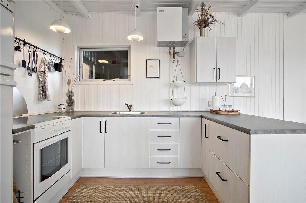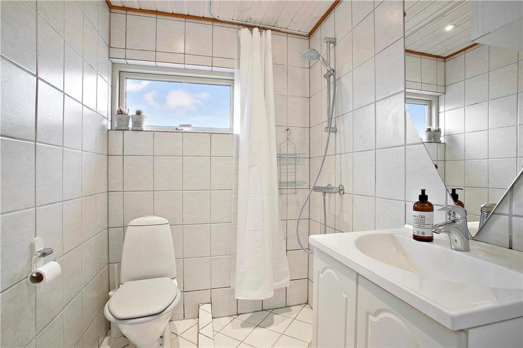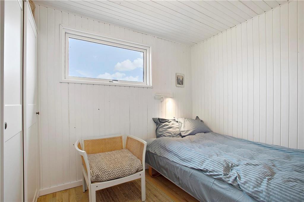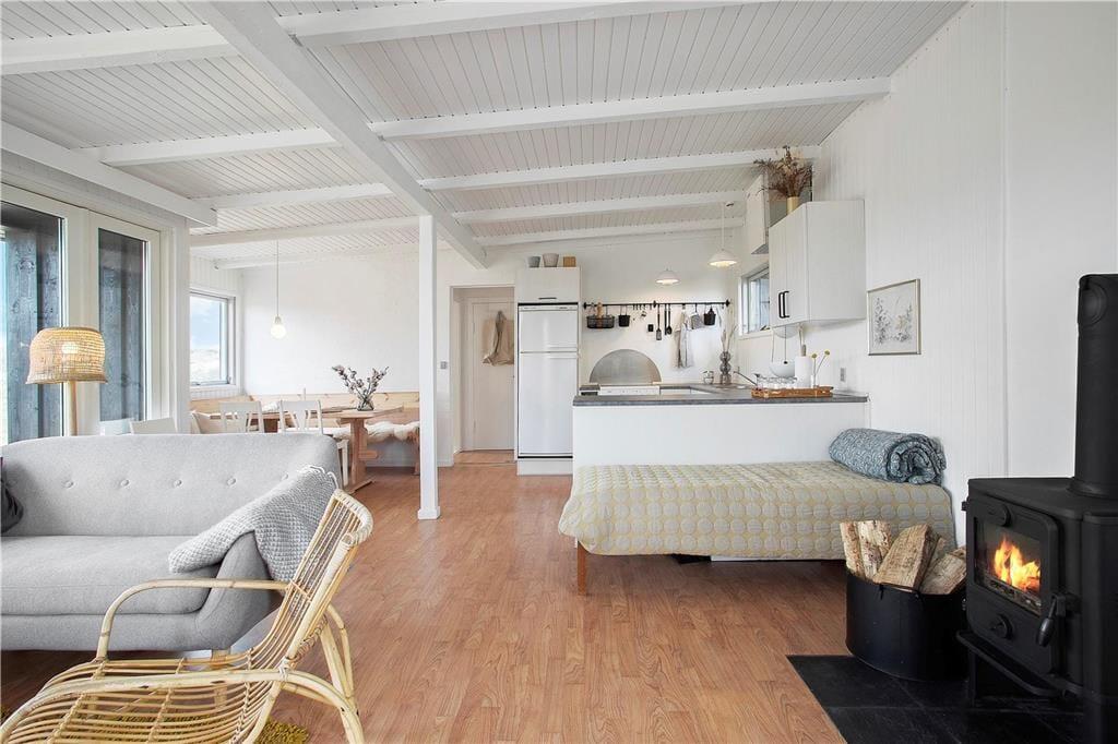 Sommerhuset har ligget her i de naturskønne omgivelser siden 1969, og senest er det blevet moderniseret i 2020. Det ses tydeligt på husets indre, der er lyst og lækkert indrettet – med behørig respekt for den oprindelige charme, så det stadig føles som et rigtigt sommerhus. Moderne faciliteter gør ferielivet bekvemt: For eksempel er der varmepumpe og wi-fi i sommerhuset, og et TV med Chromecast gør det nemt at streame film og serier. Andre ting er der dog ikke ændret på, for der er stadig brændeovn i stuen, og i den åbne køkkenafdeling skal opvasken klares i hånden på gammeldags manér. Udsigten er der selvfølgelig heller ikke ændret på, og den er fantastisk, blandt andet fra spisepladsen og stuens sofahjørne. Planløsningen byder endelig også på et badeværelse og tre soveværelser – sidstnævnte er ikke store rum, men til gengæld er dobbeltsengene af meget høj kvalitet og måler begge 140x200 cm.